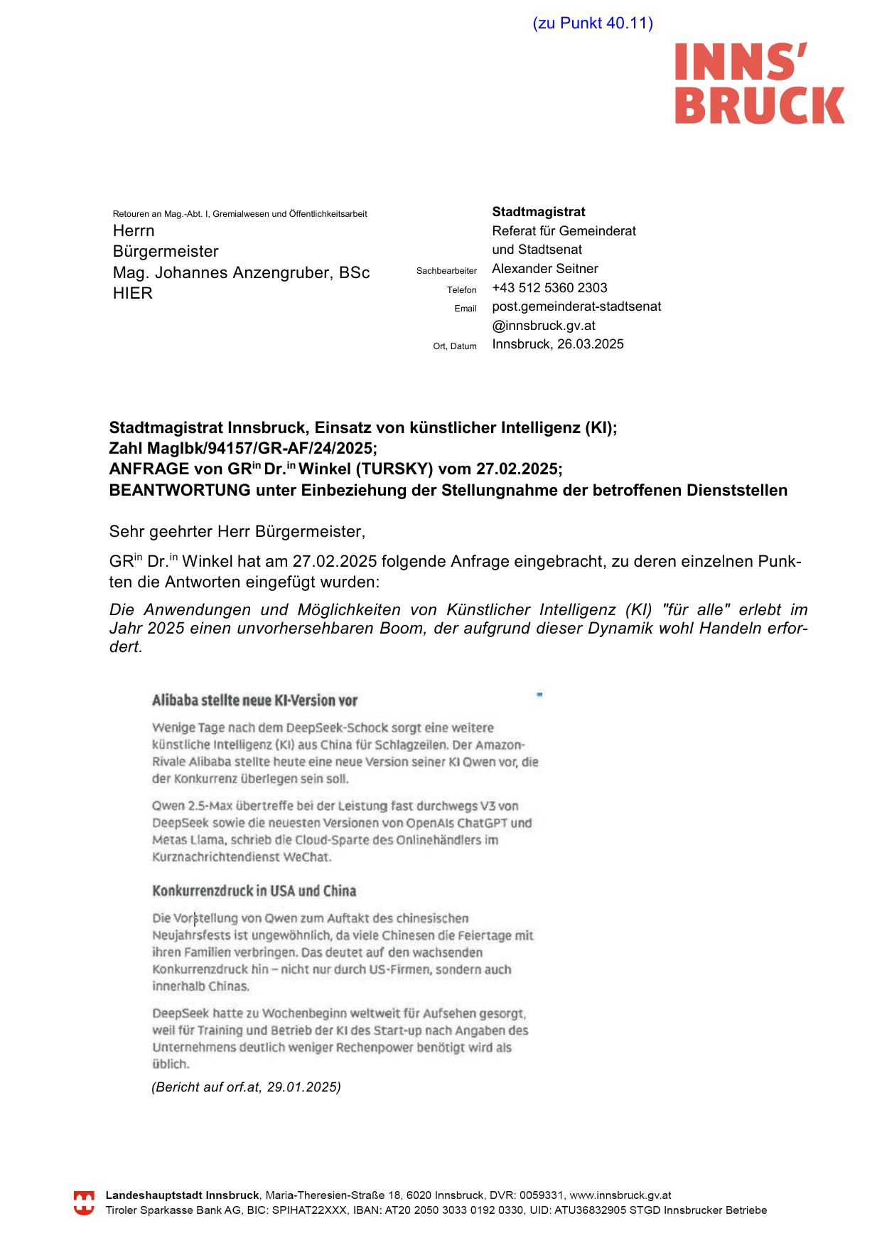 Stadtmagistrat Innsbruck, Einsatz von künstlicher Intelligenz (KI);