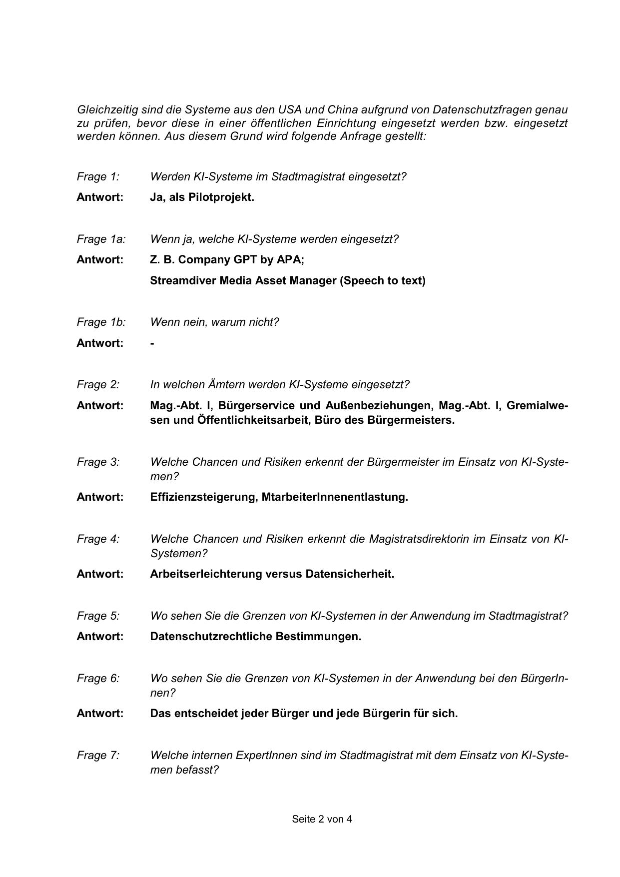 Werden KI-Systeme im Stadtmagistrat eingesetzt?
