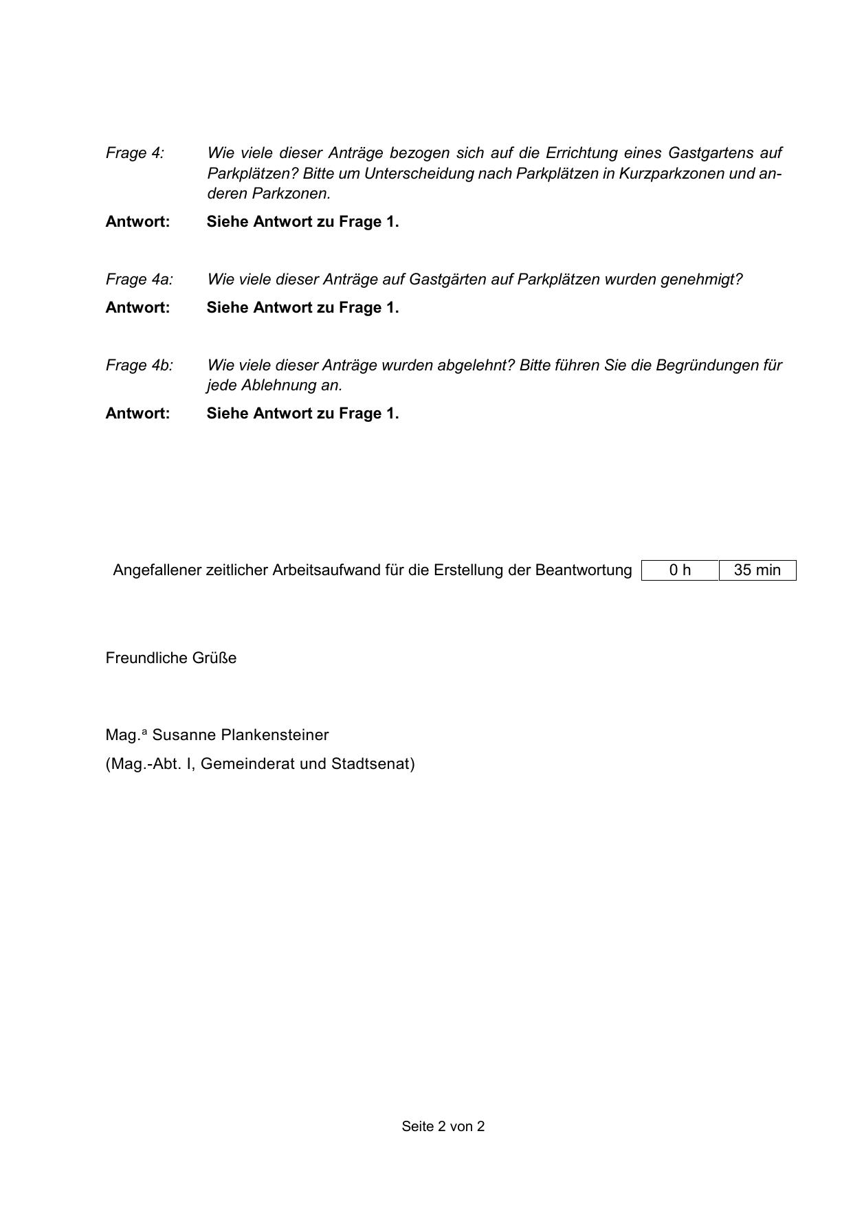 Wie viele dieser Anträge auf Gastgärten auf Parkplätzen wurden genehmigt?