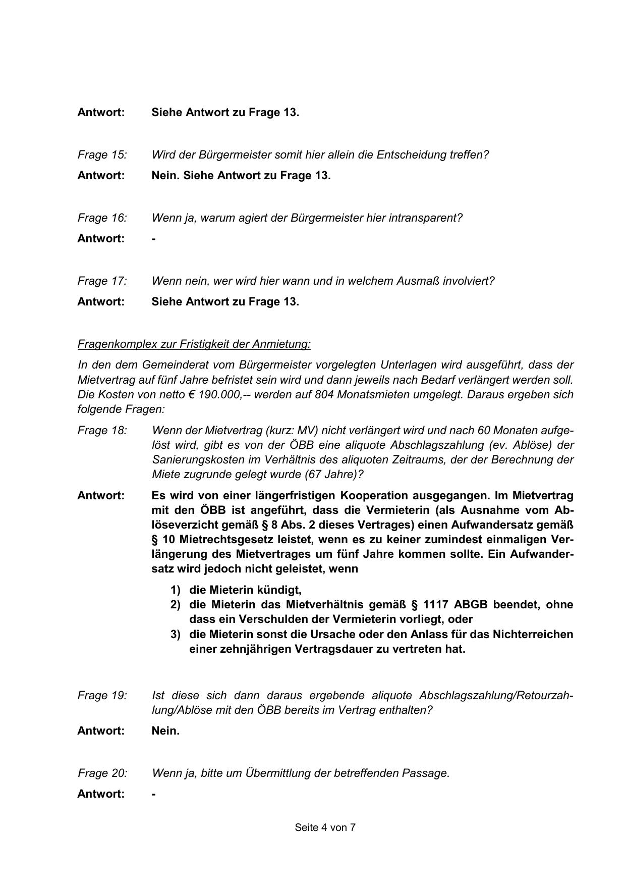 Wenn ja, warum agiert der Bürgermeister hier intransparent?