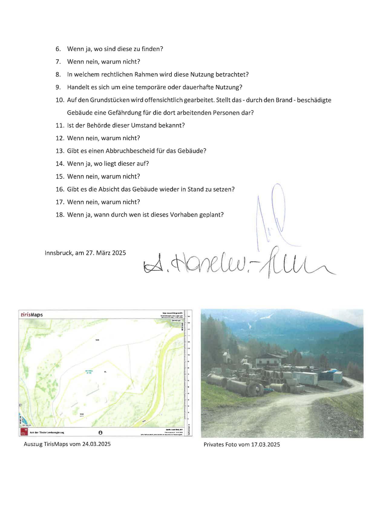 10. Auf den Grundstücken wird offensichtlich gearbeitet. Stellt das - durch den Brand - beschädigte