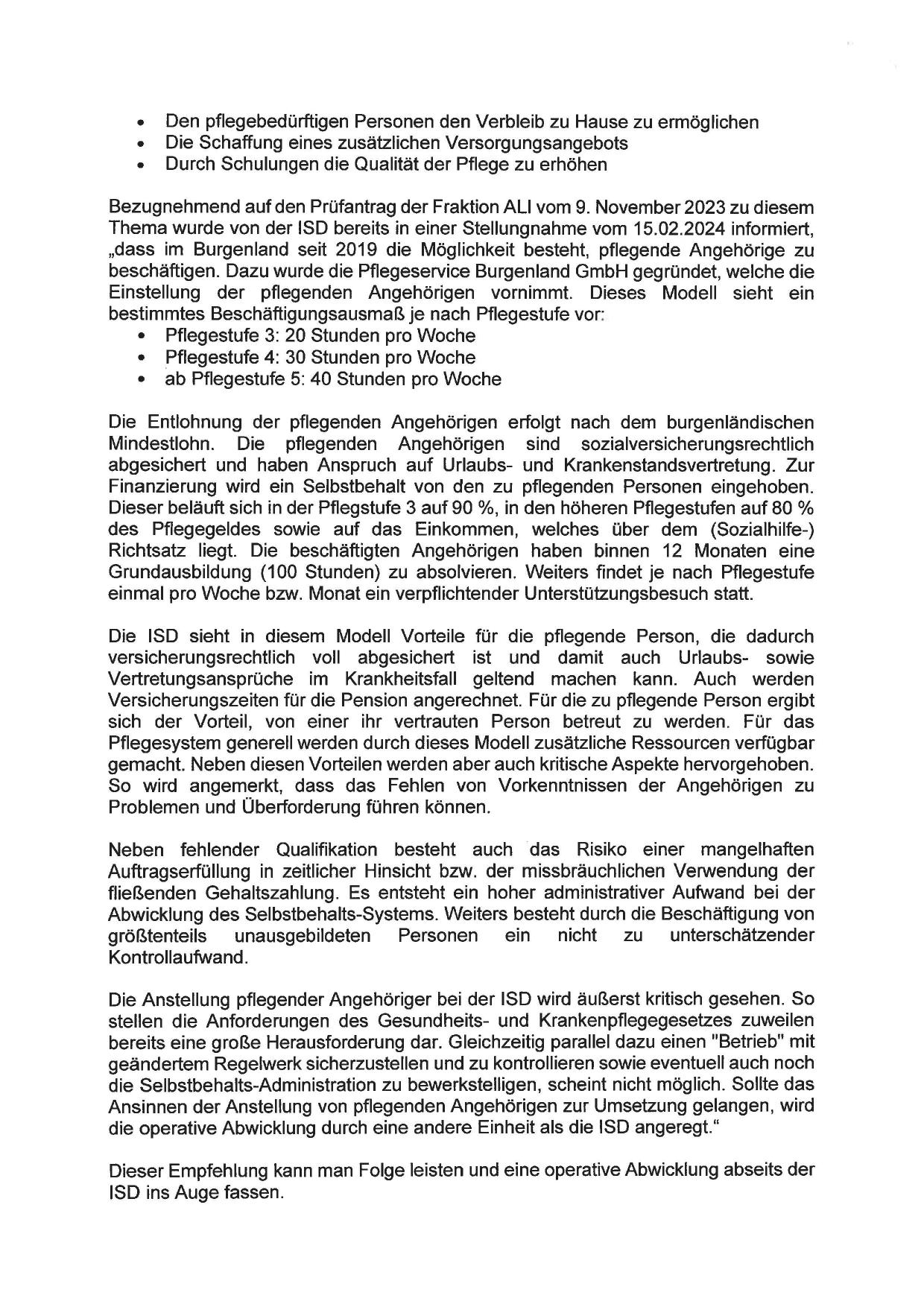 Thema wurde von der ISD bereits in einer Stellungnahme vom 15.02.2024 informiert,