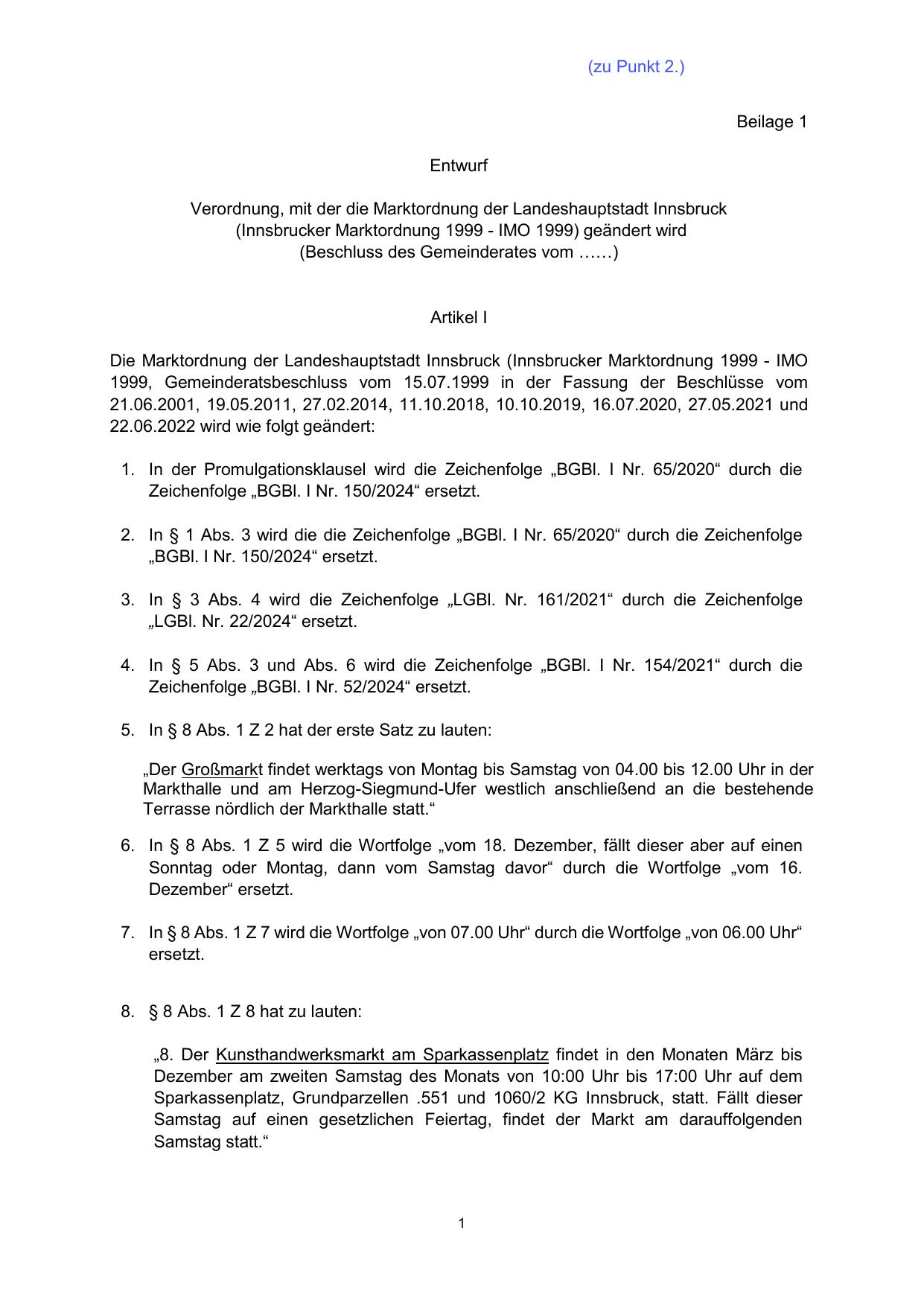 Verordnung, mit der die Marktordnung der Landeshauptstadt Innsbruck