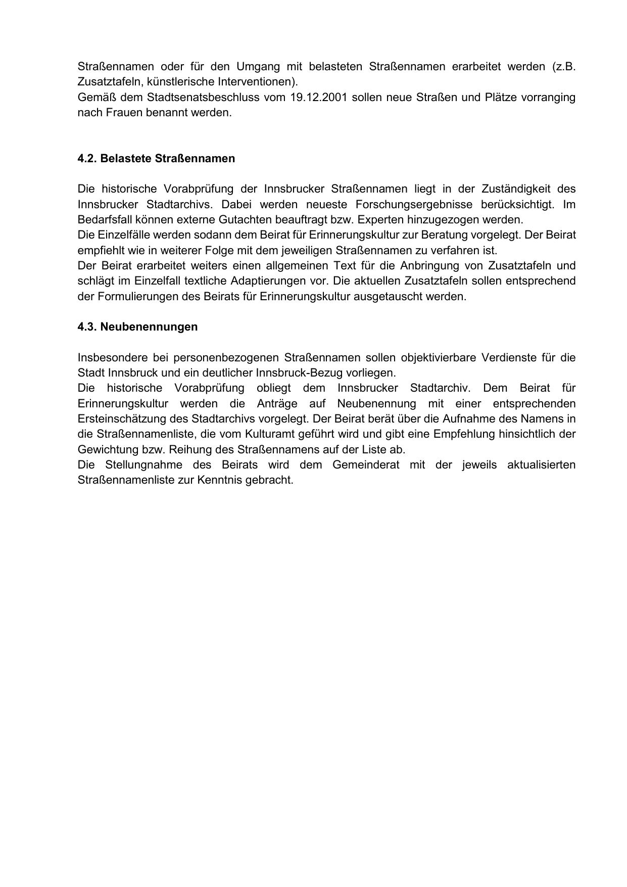 Die historische Vorabprüfung obliegt dem Innsbrucker Stadtarchiv. Dem Beirat für