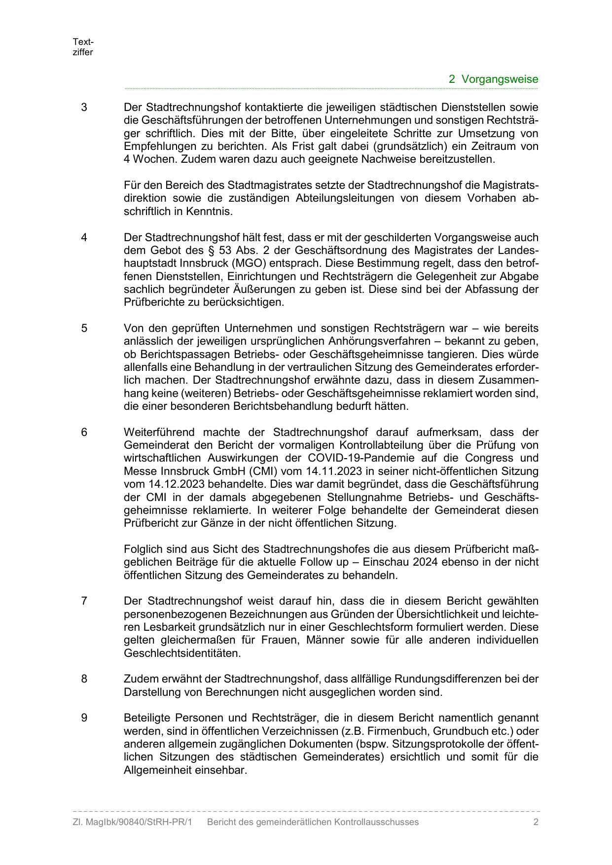 allenfalls eine Behandlung in der vertraulichen Sitzung des Gemeinderates erforderlich machen. Der Stadtrechnungshof erwähnte dazu, dass in diesem Zusammenhang keine (weiteren) Betriebs- oder Geschäftsgeheimnisse reklamiert worden sind,