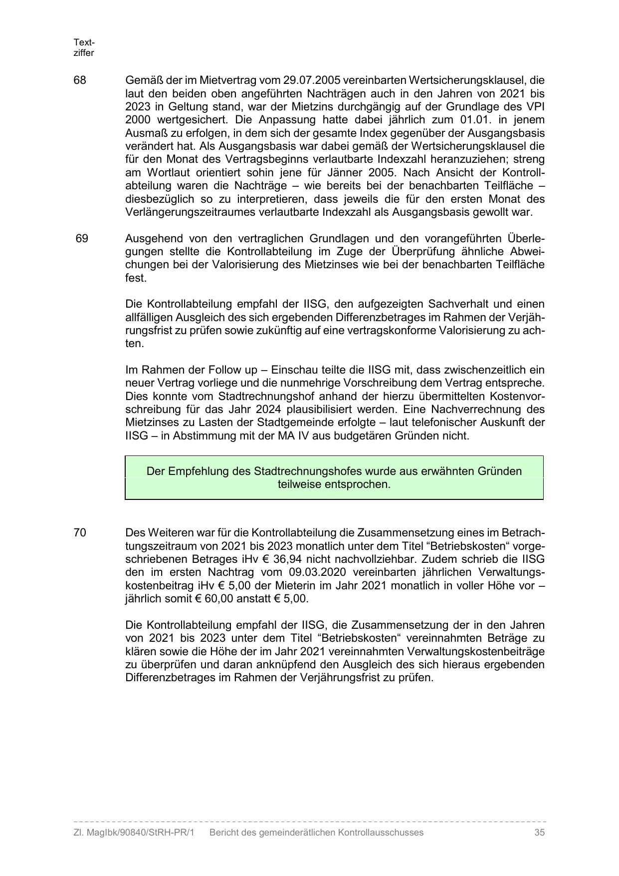 Dies konnte vom Stadtrechnungshof anhand der hierzu übermittelten Kostenvorschreibung für das Jahr 2024 plausibilisiert werden. Eine Nachverrechnung des