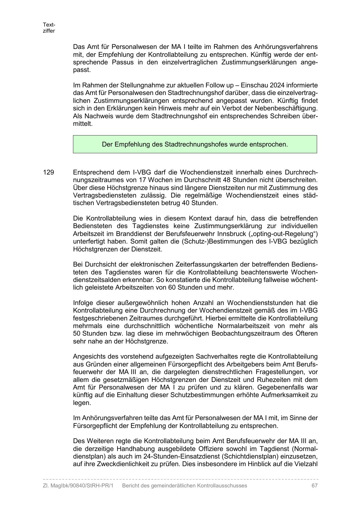 Amt für Personalwesen der MA I zu prüfen und zu klären. Gegebenenfalls war