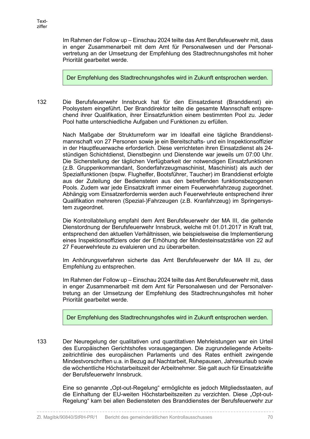 die Einhaltung der EU-weiten Höchstarbeitszeiten zu verzichten. Diese „Opt-outRegelung“ kam bei allen Bediensteten des Branddienstes der Berufsfeuerwehr zur