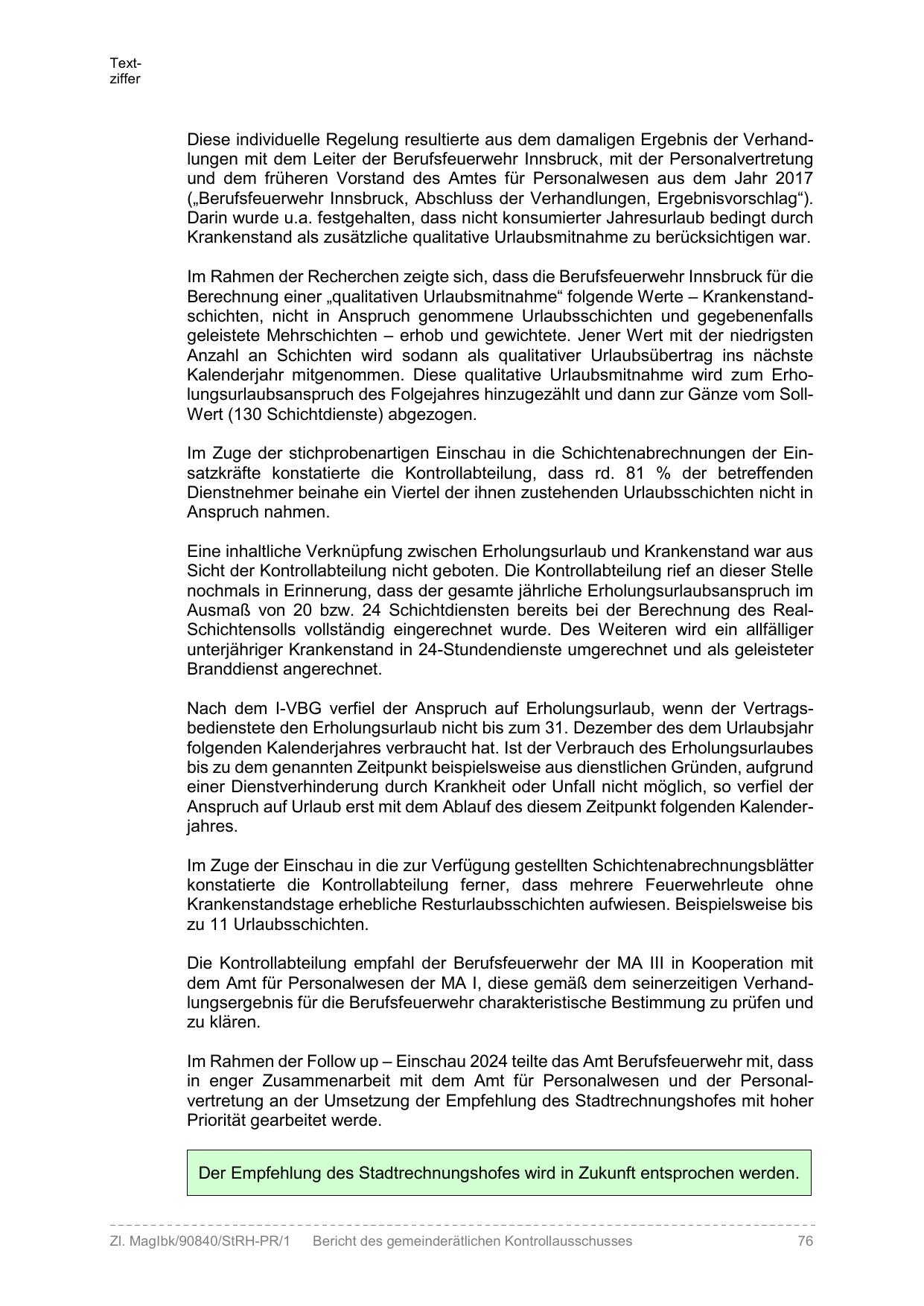 („Berufsfeuerwehr Innsbruck, Abschluss der Verhandlungen, Ergebnisvorschlag“).