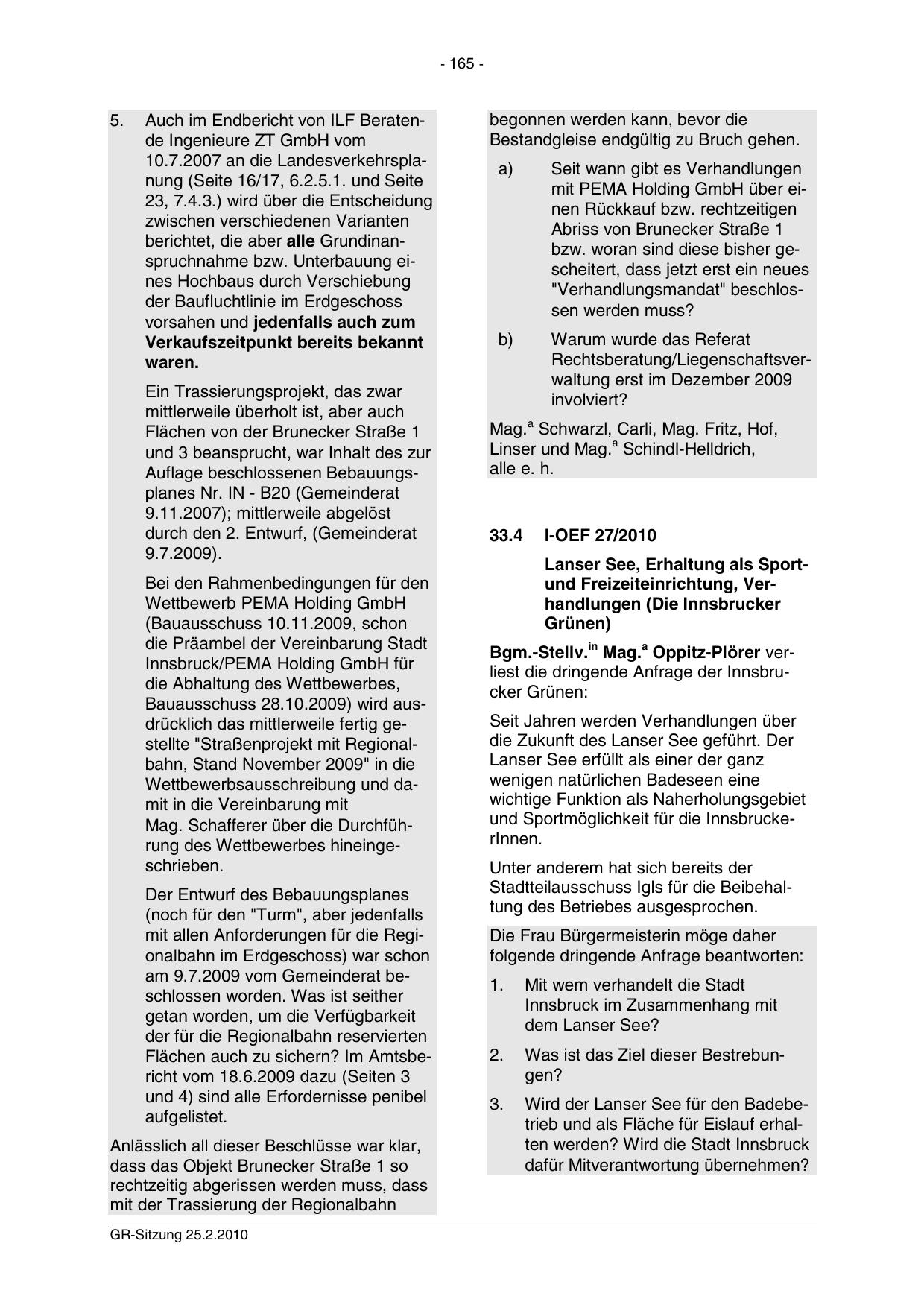 Bgm.-Stellv.in Mag.a Oppitz-Plörer verliest die dringende Anfrage der Innsbrucker Grünen: