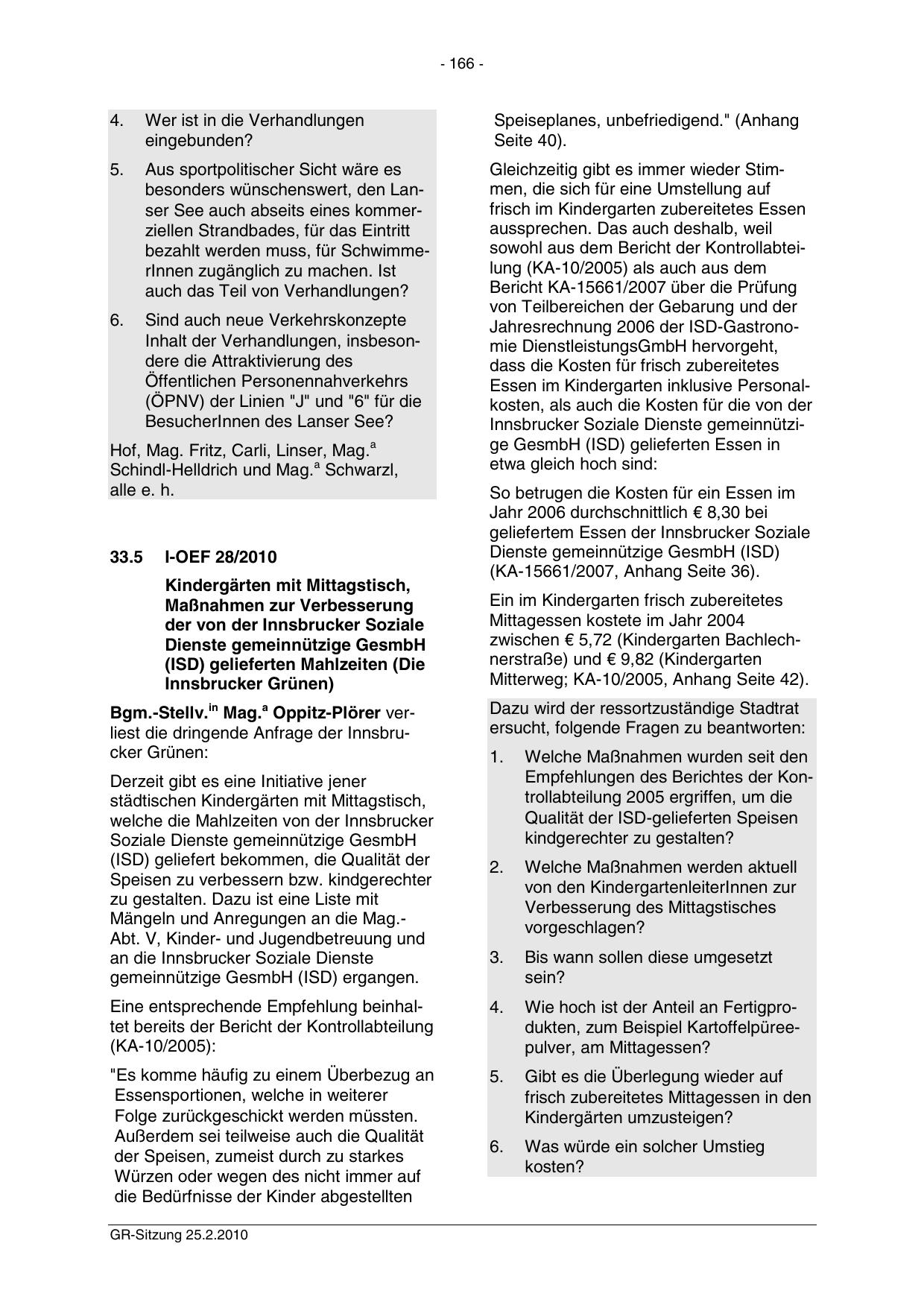 Bgm.-Stellv.in Mag.a Oppitz-Plörer verliest die dringende Anfrage der Innsbrucker Grünen: