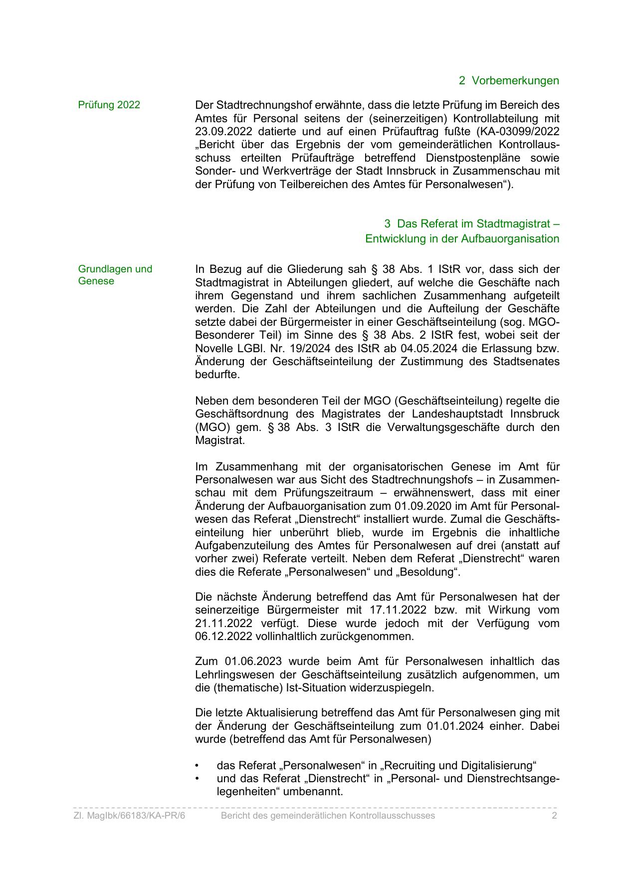 Personalwesen war aus Sicht des Stadtrechnungshofs – in Zusammenschau mit dem Prüfungszeitraum – erwähnenswert, dass mit einer