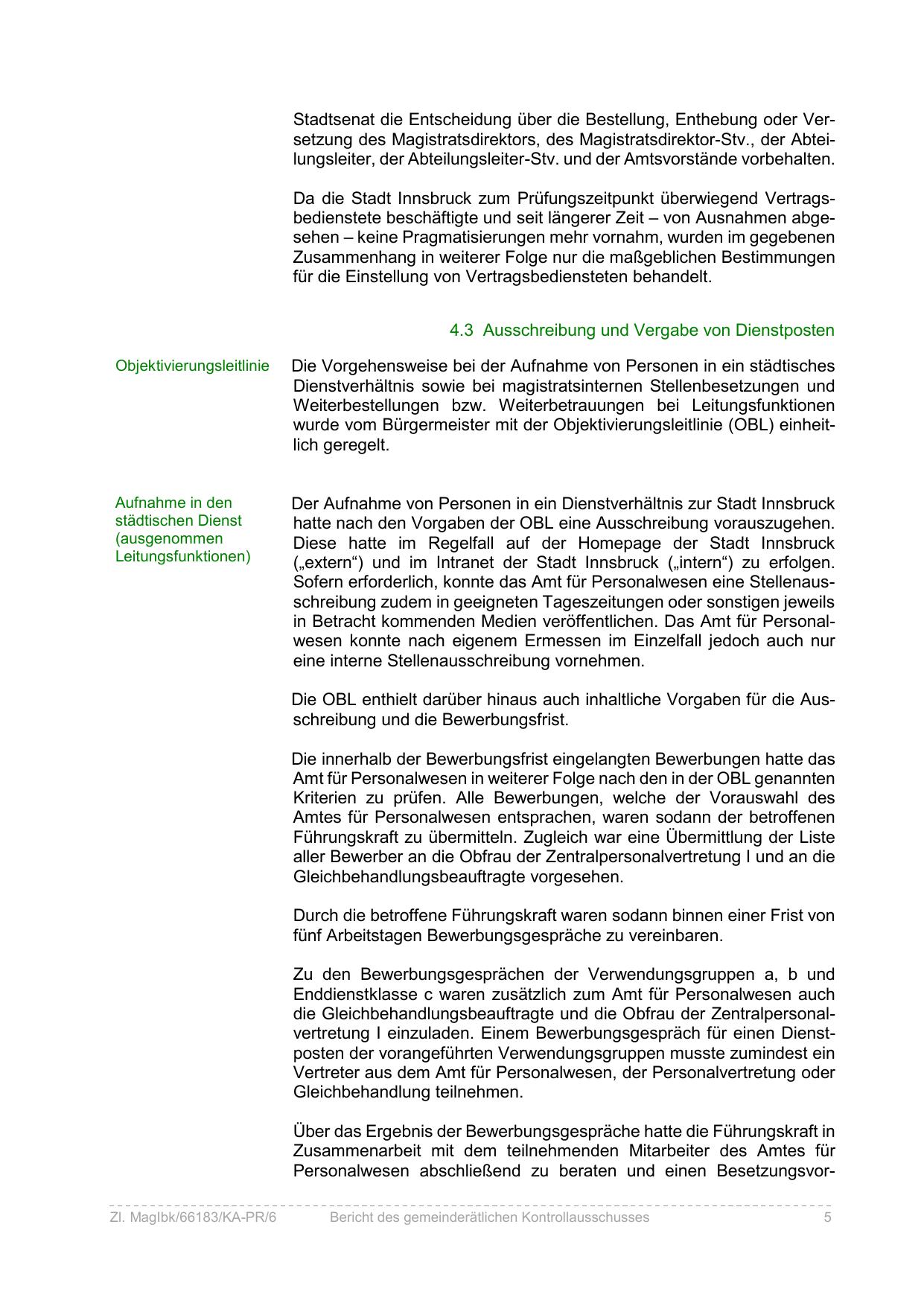Da die Stadt Innsbruck zum Prüfungszeitpunkt überwiegend Vertragsbedienstete beschäftigte und seit längerer Zeit – von Ausnahmen abgesehen – keine Pragmatisierungen mehr vornahm, wurden im gegebenen