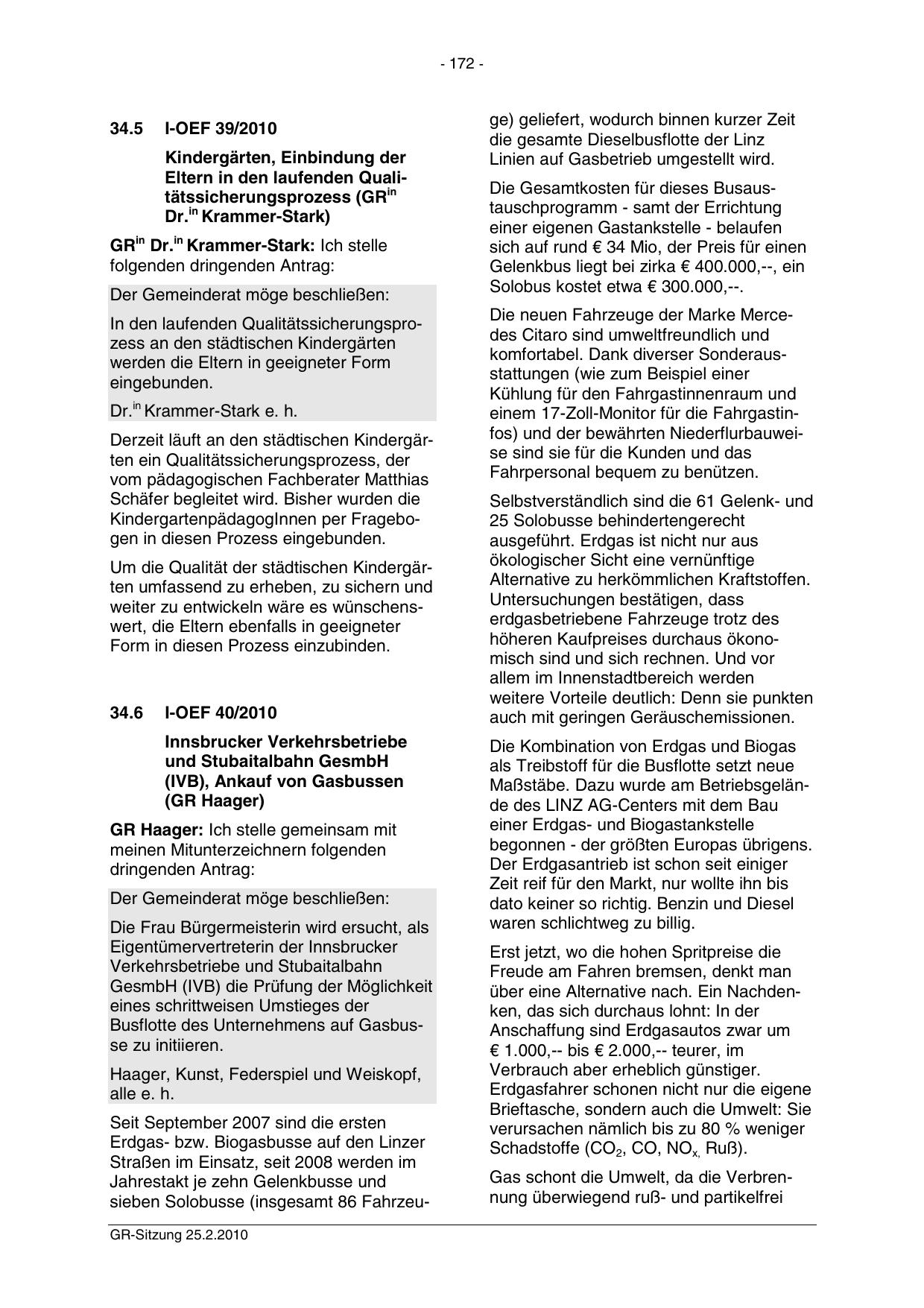 sieben Solobusse (insgesamt 86 FahrzeuGR-Sitzung 25.2.2010