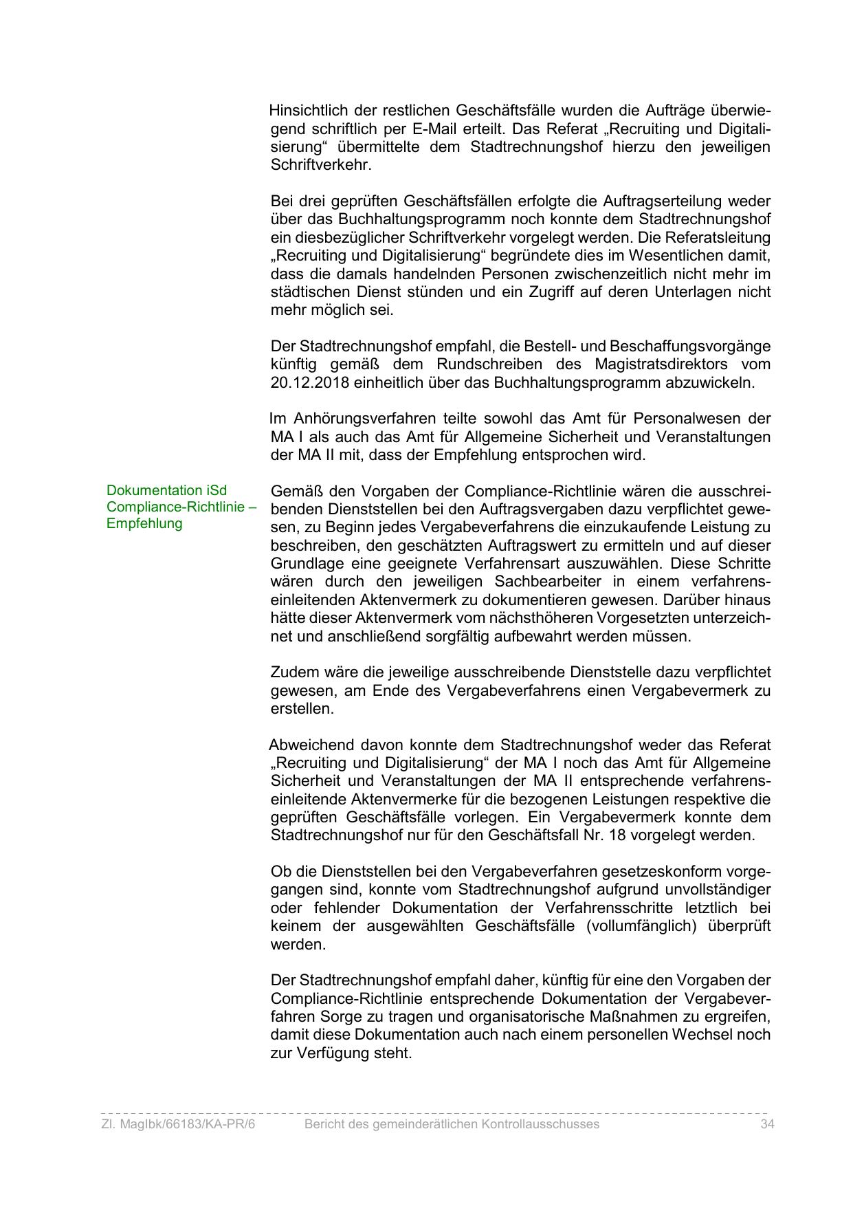 Hinsichtlich der restlichen Geschäftsfälle wurden die Aufträge überwiegend schriftlich per E-Mail erteilt. Das Referat „Recruiting und Digitalisierung“ übermittelte dem Stadtrechnungshof hierzu den jeweiligen