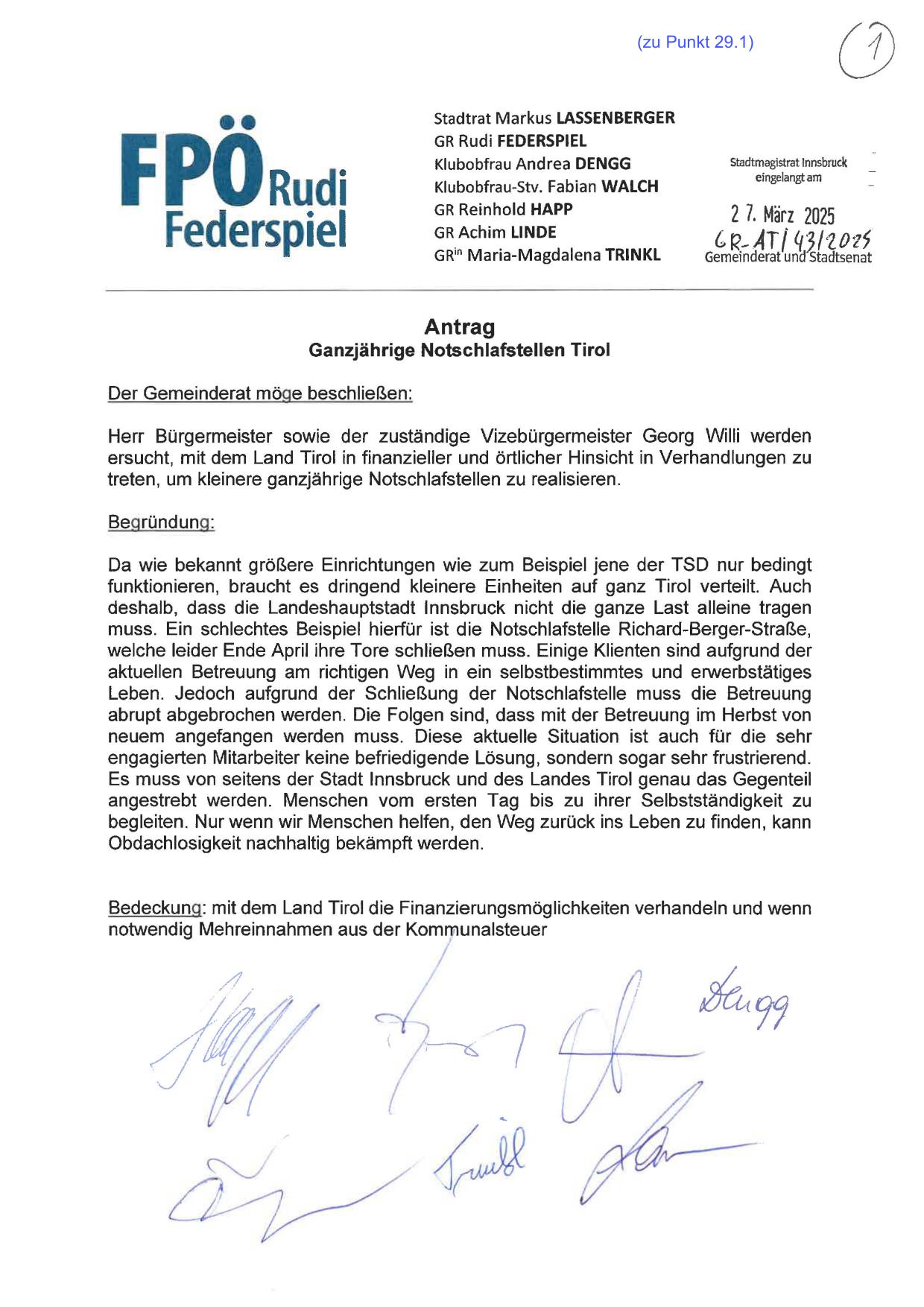 deshalb, dass die Landeshauptstadt Innsbruck nicht die ganze Last alleine tragen