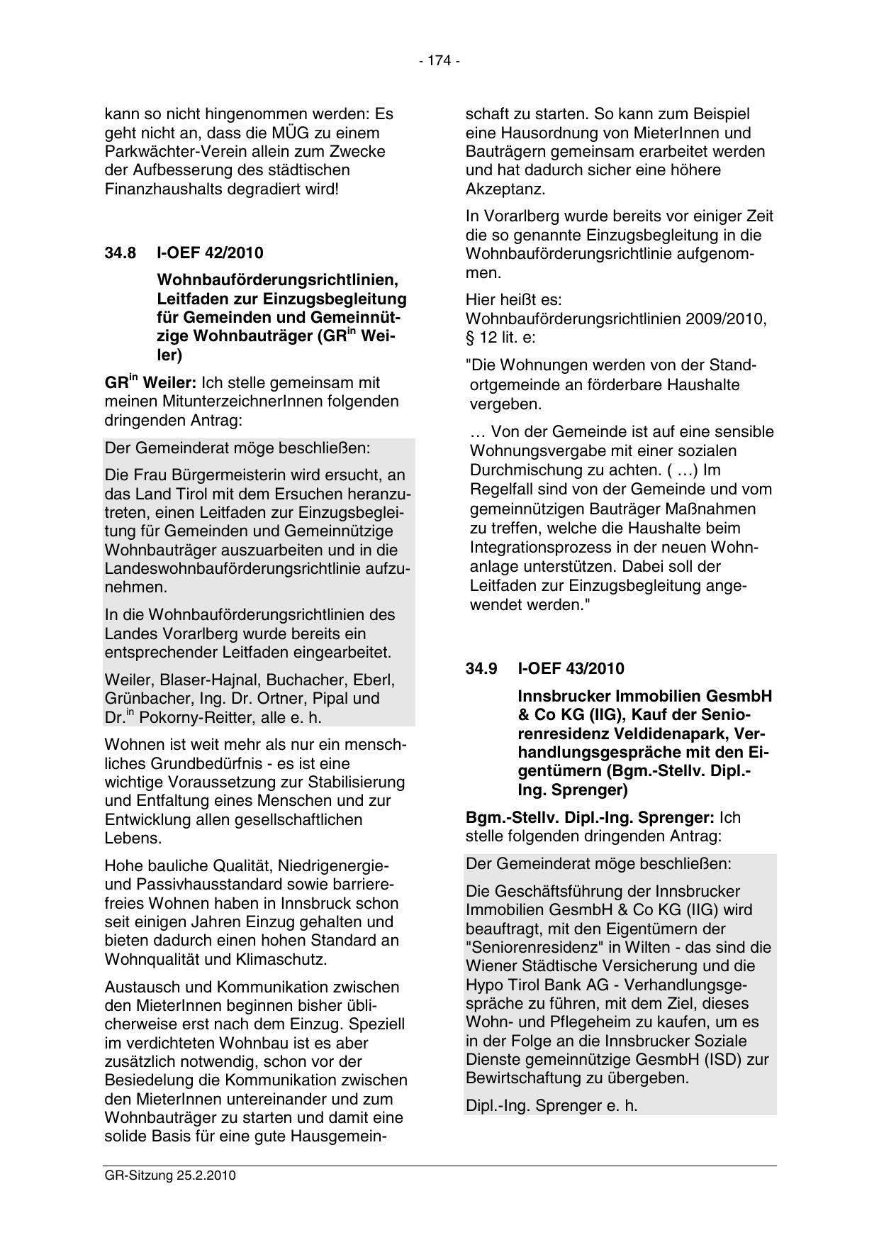 für Gemeinden und Gemeinnützige Wohnbauträger (GRin Weiler)