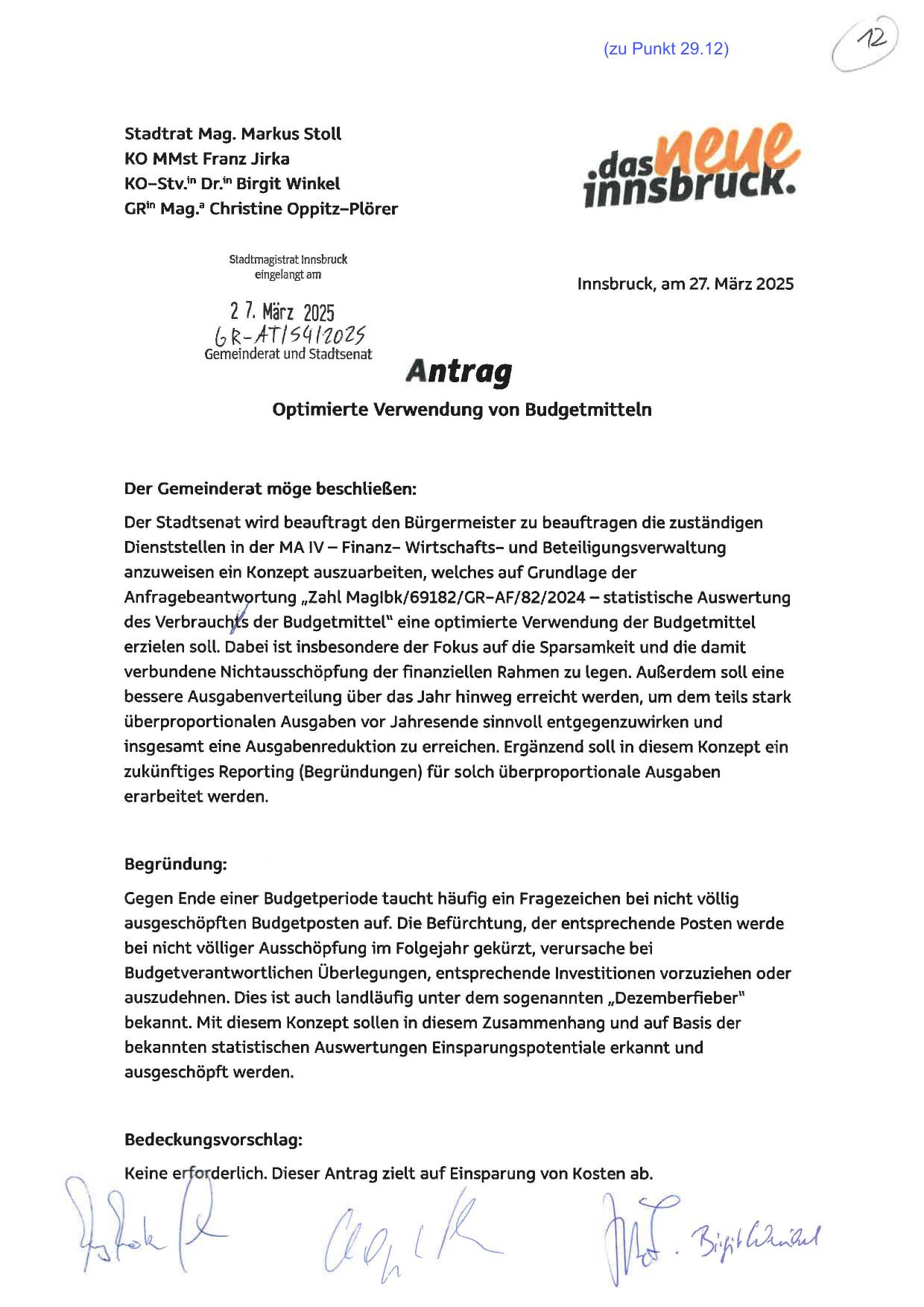 Der Stadtsenat wird beauftragt den Bürgermeister zu beauftragen die zuständigen