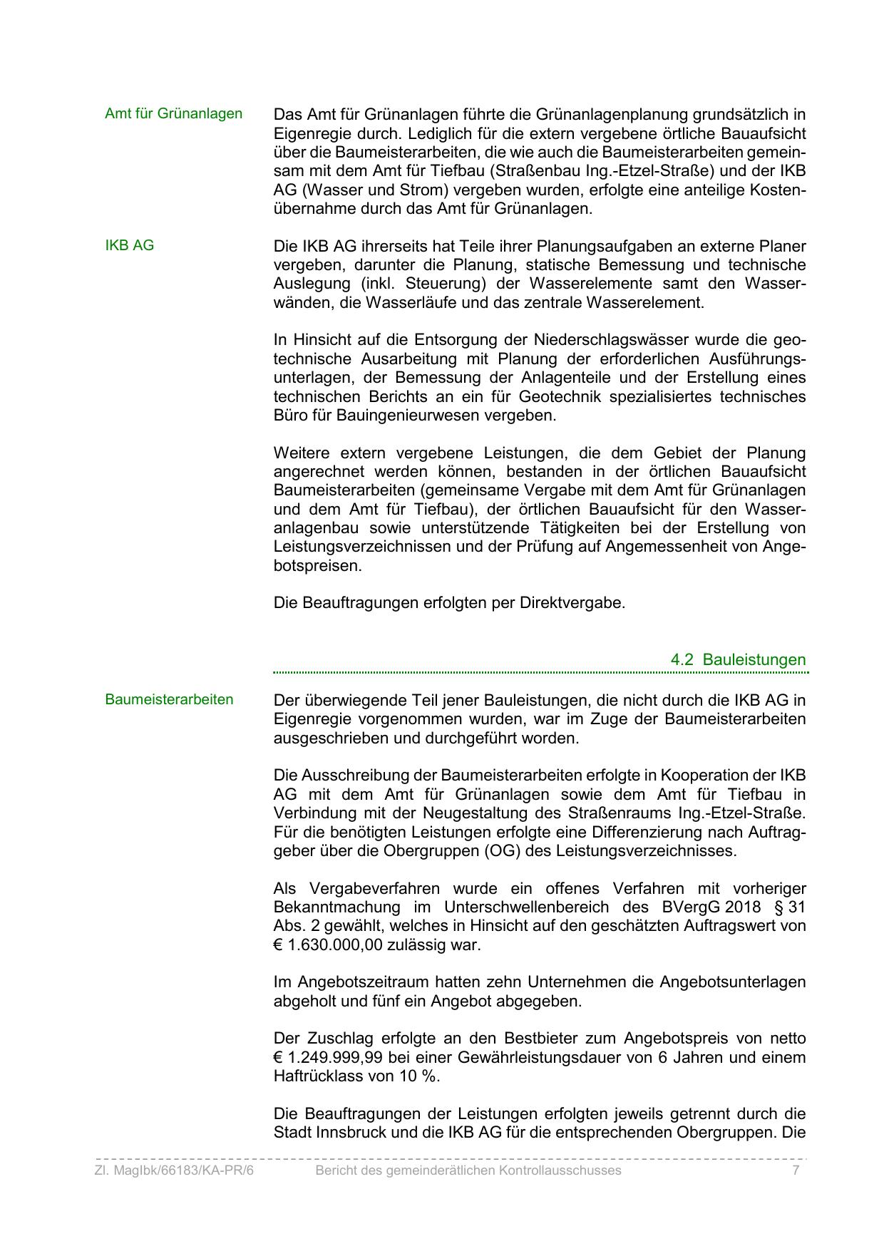 Stadt Innsbruck und die IKB AG für die entsprechenden Obergruppen. Die