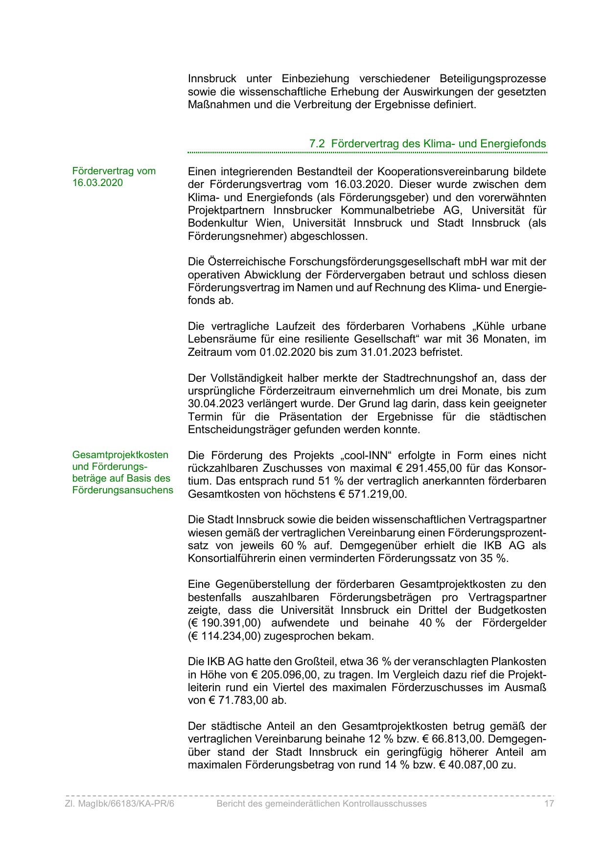 vertraglichen Vereinbarung beinahe 12 % bzw. € 66.813,00. Demgegenüber stand der Stadt Innsbruck ein geringfügig höherer Anteil am
