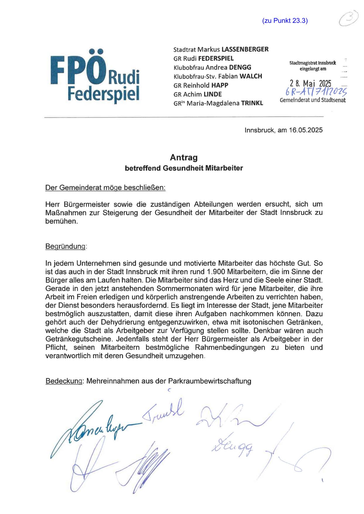 Maßnahmen zur Steigerung der Gesundheit der Mitarbeiter der Stadt Innsbruck zu