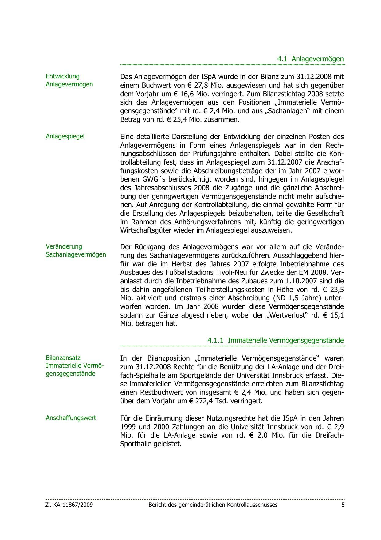 zum 31.12.2008 Rechte für die Benützung der LA-Anlage und der Dreifach-Spielhalle am Sportgelände der Universität Innsbruck erfasst. Diese immateriellen Vermögensgegenstände erreichten zum Bilanzstichtag