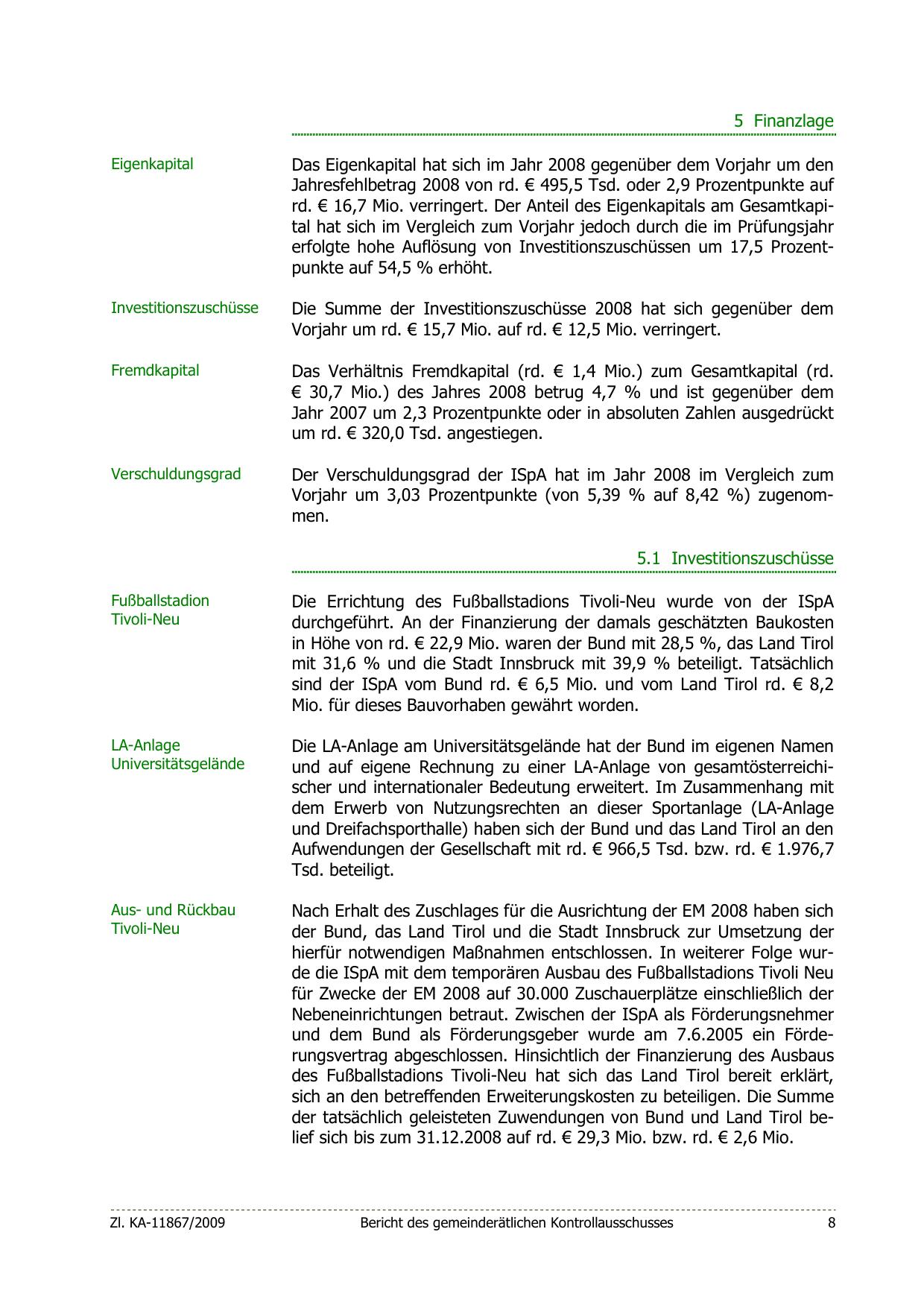 der tatsächlich geleisteten Zuwendungen von Bund und Land Tirol belief sich bis zum 31.12.2008 auf rd. € 29,3 Mio. bzw. rd. € 2,6 Mio.