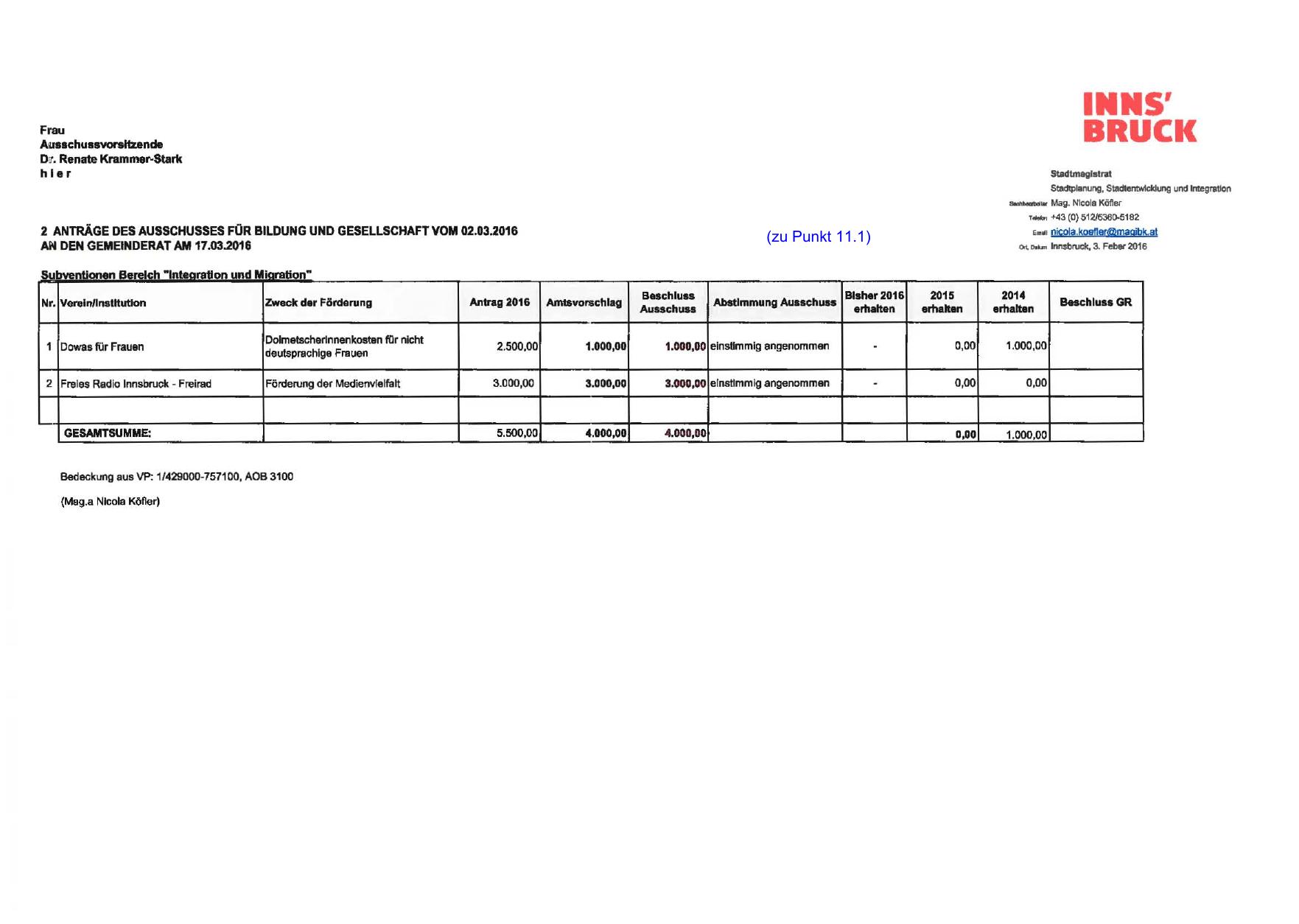 2 ANTRÄGE DES AUSSCHUSSES FOR BILDUNG UND GESELLSCHAFT VOM 02.03.2016