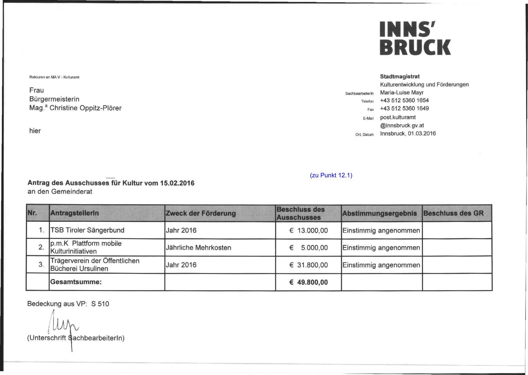 Antrag des Ausschusses für Kultur vom 15.02.2016