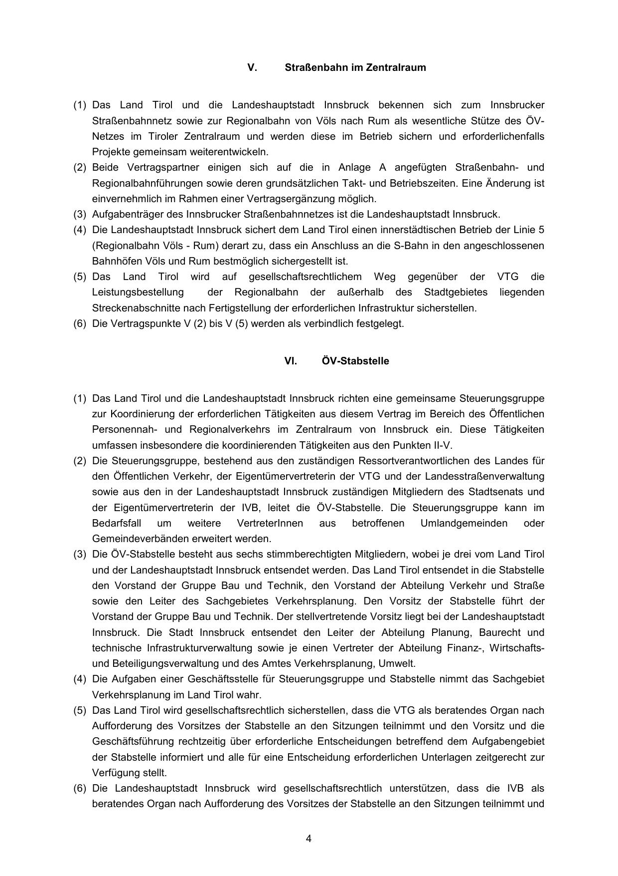 (4) Die Landeshauptstadt Innsbruck sichert dem Land Tirol einen innerstädtischen Betrieb der Linie 5