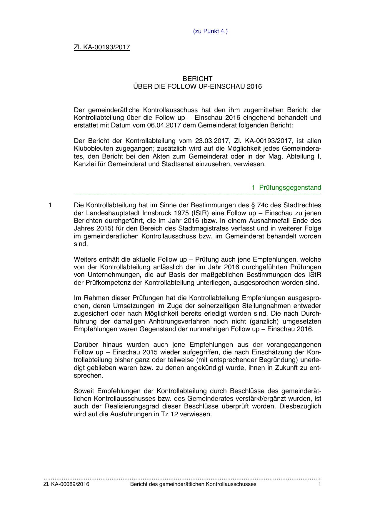 Der Bericht der Kontrollabteilung vom 23.03.2017, Zl. KA-00193/2017, ist allen