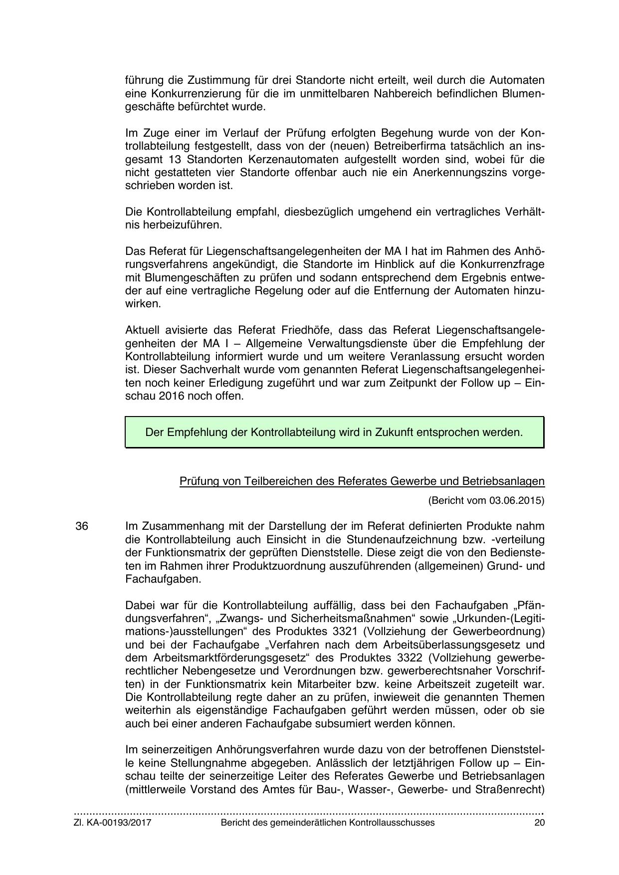 Prüfung von Teilbereichen des Referates Gewerbe und Betriebsanlagen