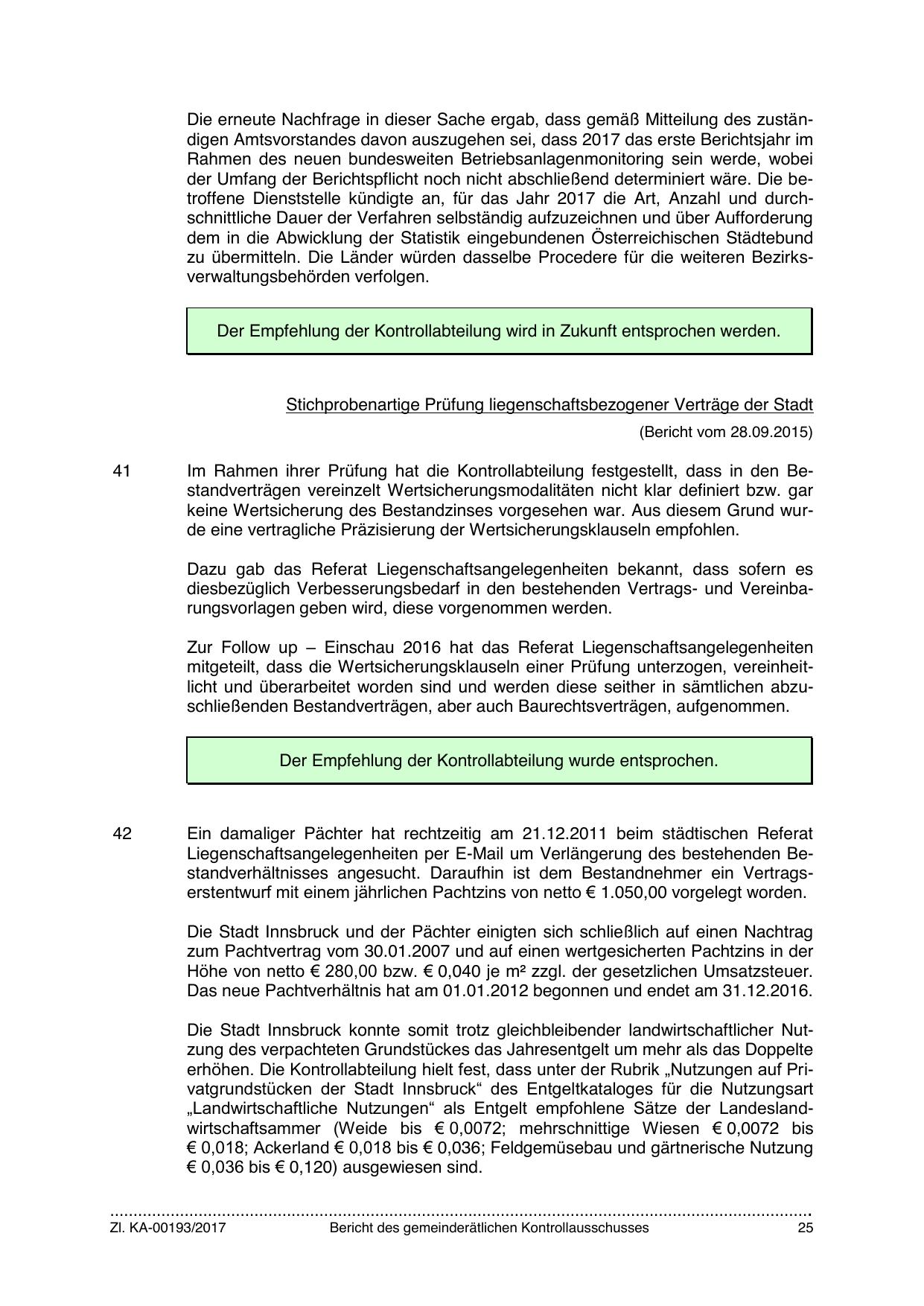 Die Stadt Innsbruck konnte somit trotz gleichbleibender landwirtschaftlicher Nutzung des verpachteten Grundstückes das Jahresentgelt um mehr als das Doppelte