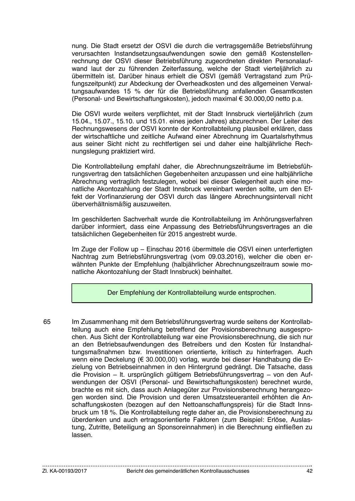 Die OSVI wurde weiters verpflichtet, mit der Stadt Innsbruck vierteljährlich (zum