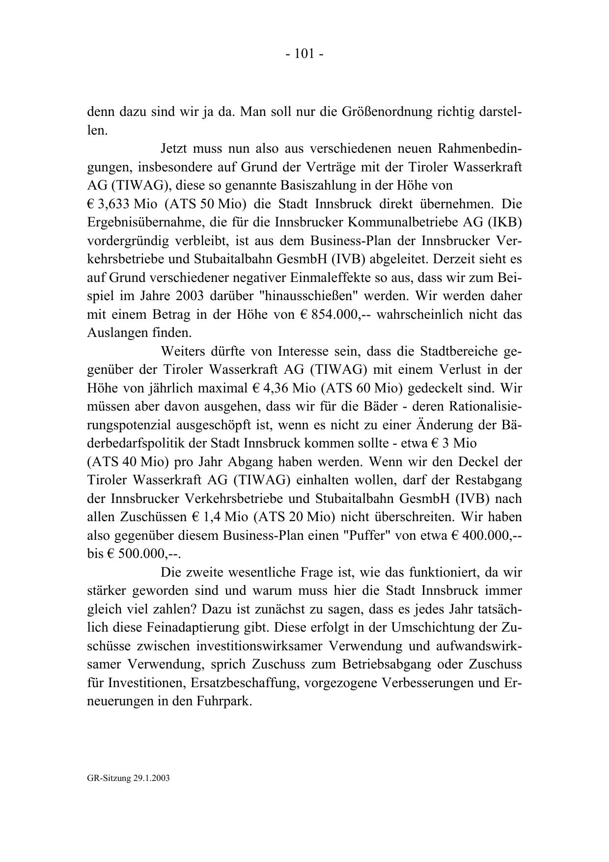 € 3,633 Mio (ATS 50 Mio) die Stadt Innsbruck direkt übernehmen. Die