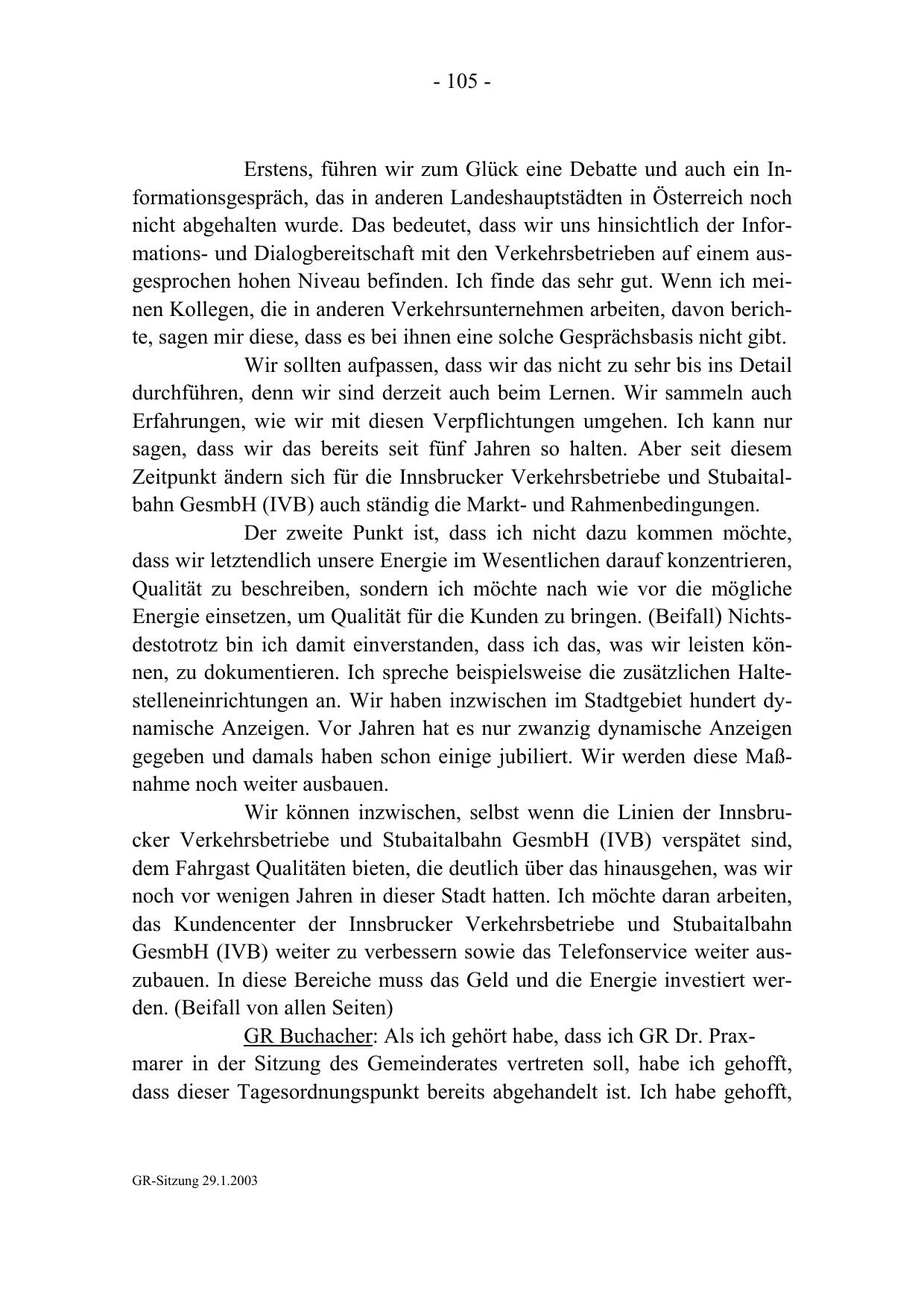GR Buchacher: Als ich gehört habe, dass ich GR Dr. Praxmarer in der Sitzung des Gemeinderates vertreten soll, habe ich gehofft,