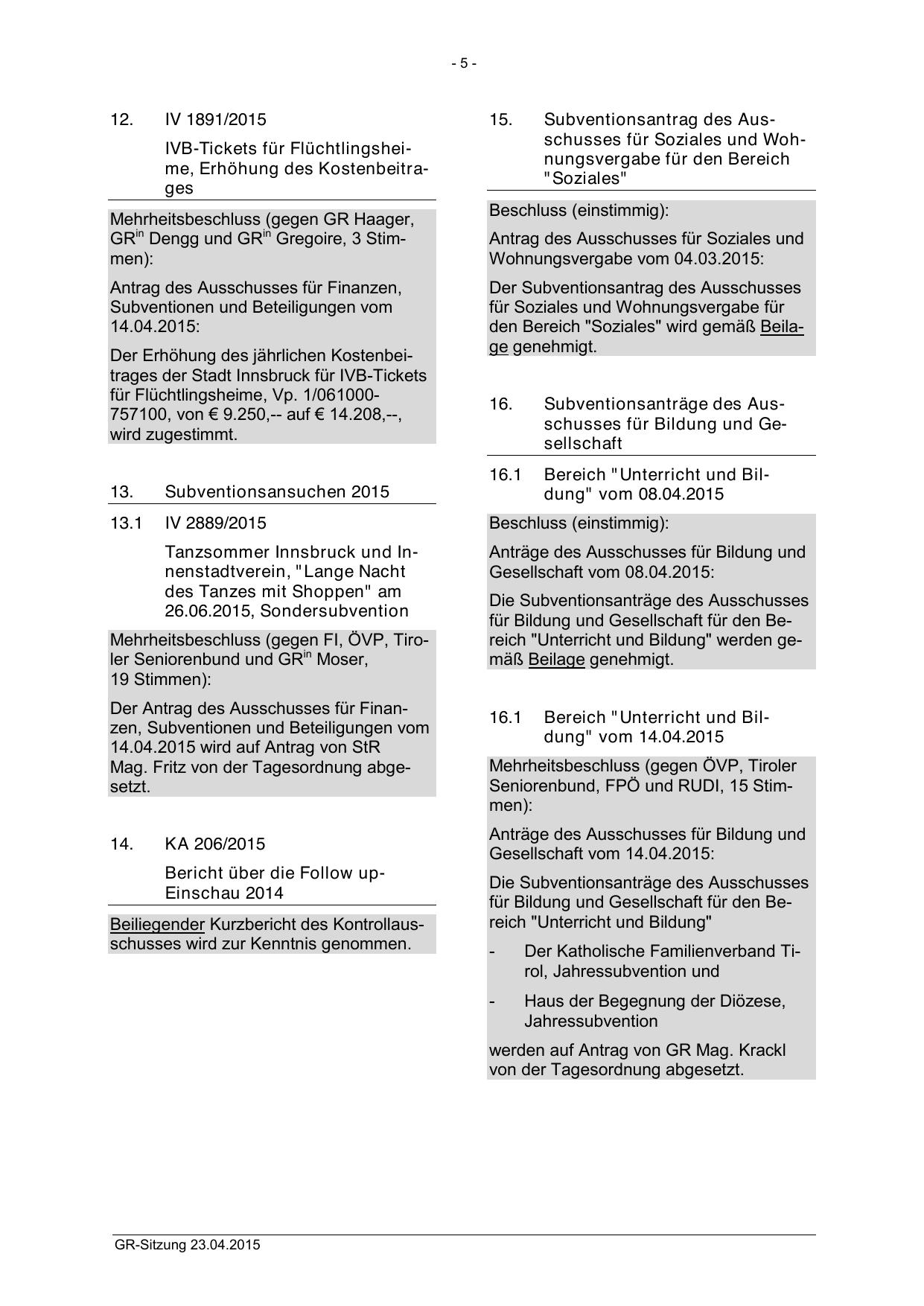 14.04.2015 wird auf Antrag von StR