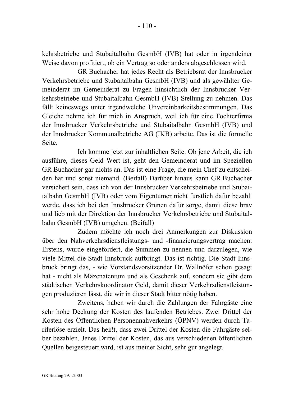 Verkehrsbetriebe und Stubaitalbahn GesmbH (IVB) und als gewählter Gemeinderat im Gemeinderat zu Fragen hinsichtlich der Innsbrucker Verkehrsbetriebe und Stubaitalbahn GesmbH (IVB) Stellung zu nehmen. Das