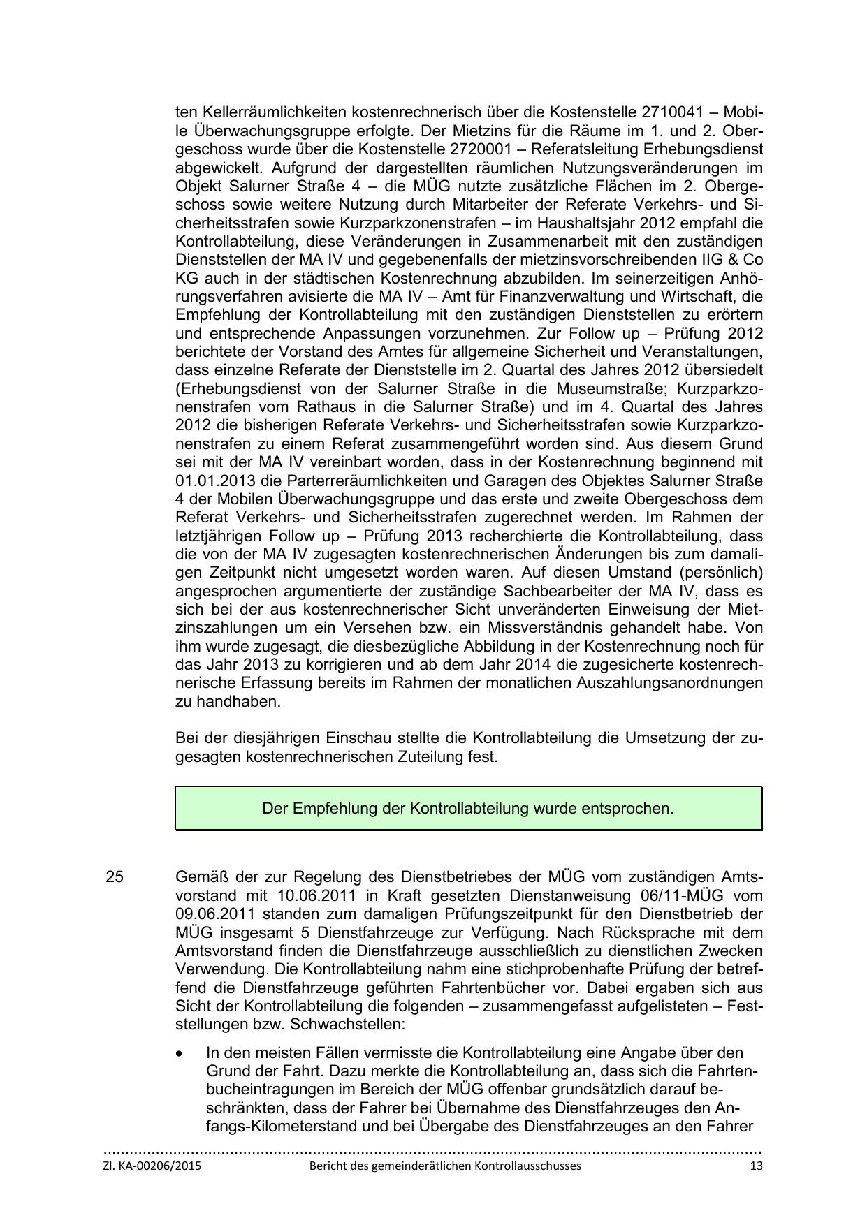 die von der MA IV zugesagten kostenrechnerischen Änderungen bis zum damaligen Zeitpunkt nicht umgesetzt worden waren. Auf diesen Umstand (persönlich)
