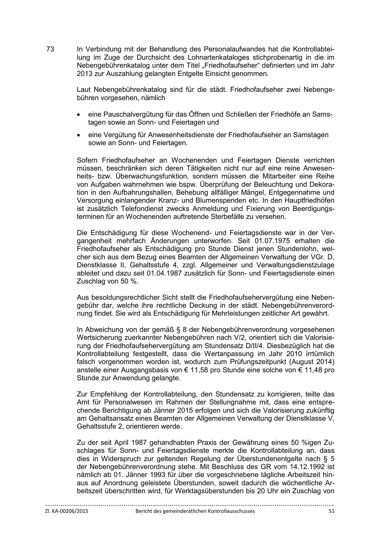 Friedhofaufseher als Entschädigung pro Stunde Dienst jenen Stundenlohn, welcher sich aus dem Bezug eines Beamten der Allgemeinen Verwaltung der VGr. D,