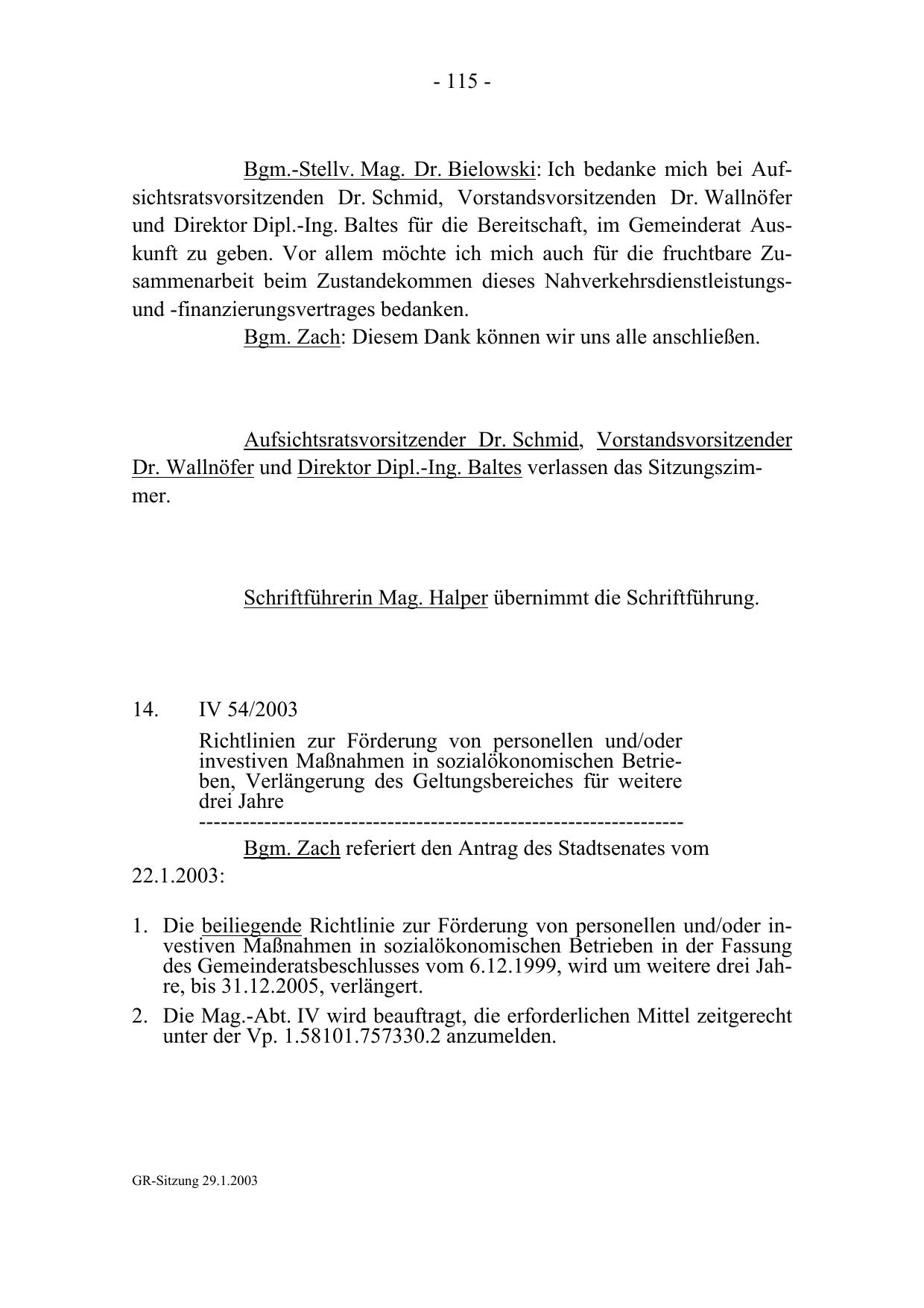 Bgm.-Stellv. Mag. Dr. Bielowski: Ich bedanke mich bei Aufsichtsratsvorsitzenden Dr. Schmid, Vorstandsvorsitzenden Dr. Wallnöfer