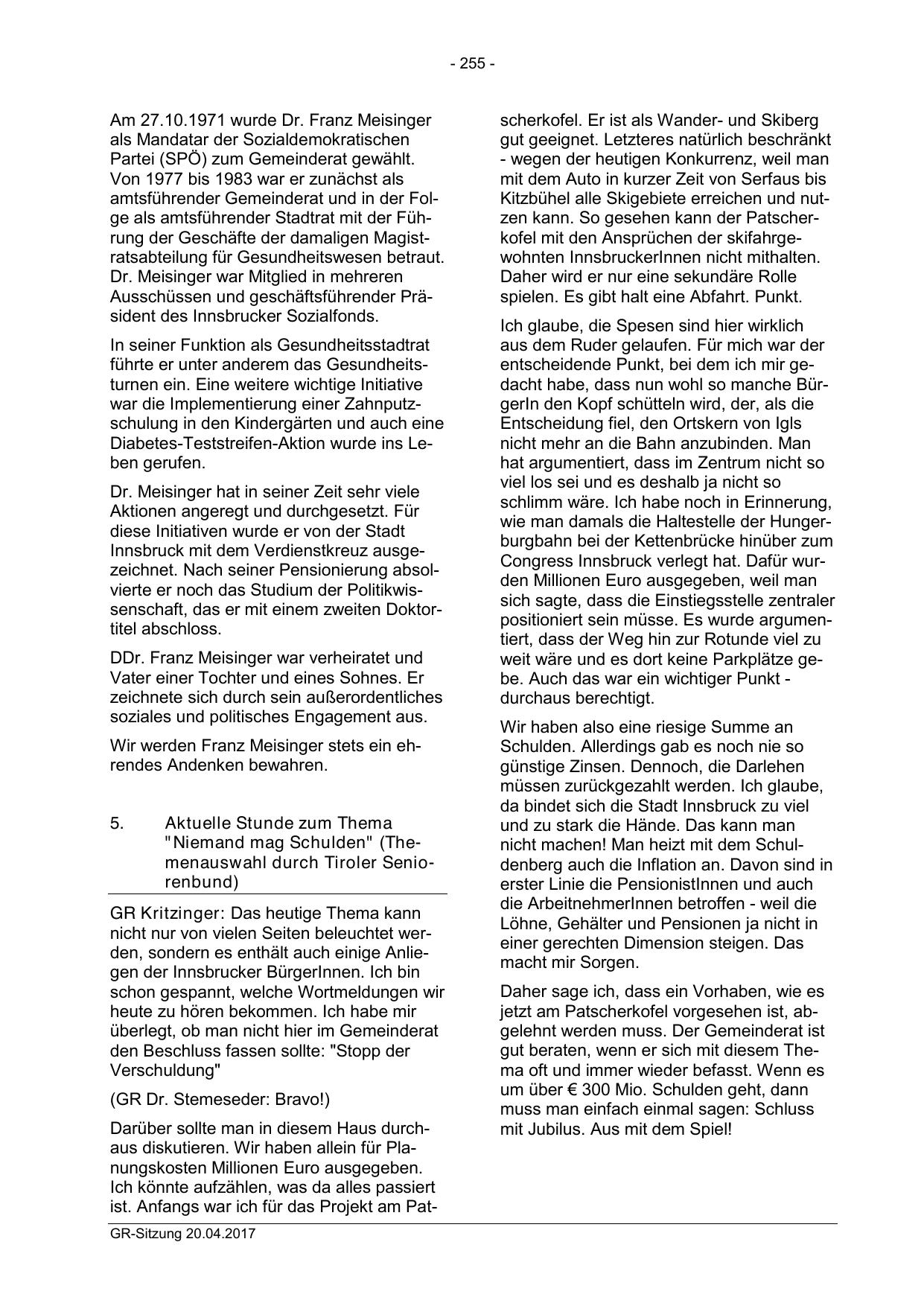 nicht nur von vielen Seiten beleuchtet werden, sondern es enthält auch einige Anliegen der Innsbrucker BürgerInnen. Ich bin