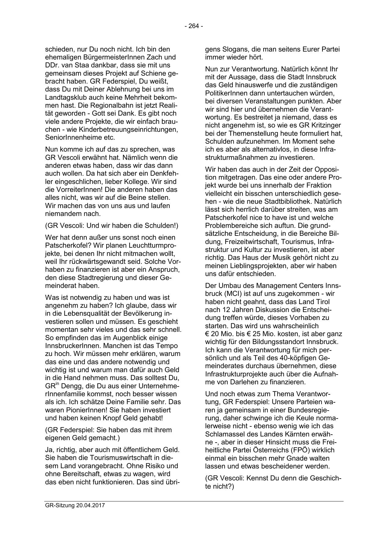 (GR Federspiel: Sie haben das mit ihrem