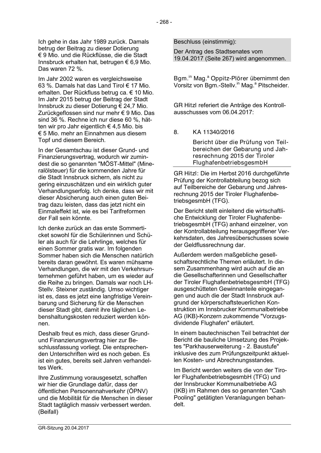 ausgeschütteten Gewinnanteile eingegangen und auch die der Stadt Innsbruck aufgrund der körperschaftsteuerlichen Konstruktion im Innsbrucker Kommunalbetriebe