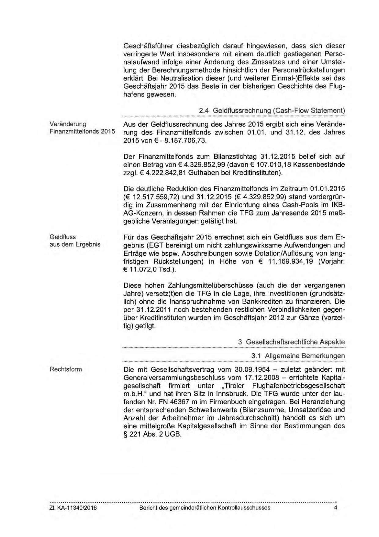 Der Finanzmittelfonds zum Bilanzstichtag 31 .12.2015 belief sich auf