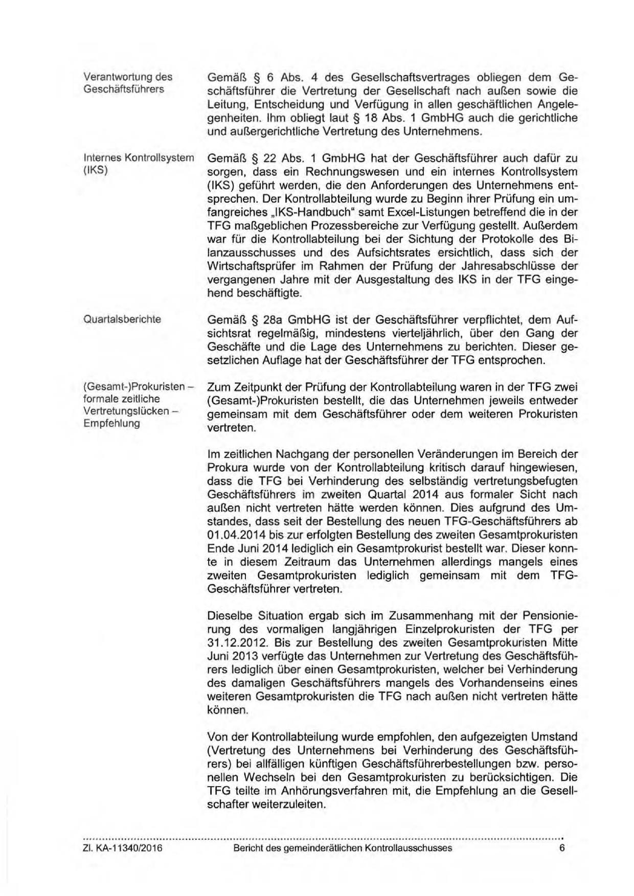 außen nicht vertreten hätte werden können . Dies aufgrund des Umstandes, dass seit der Bestellung des neuen TFG-Geschäftsführers ab