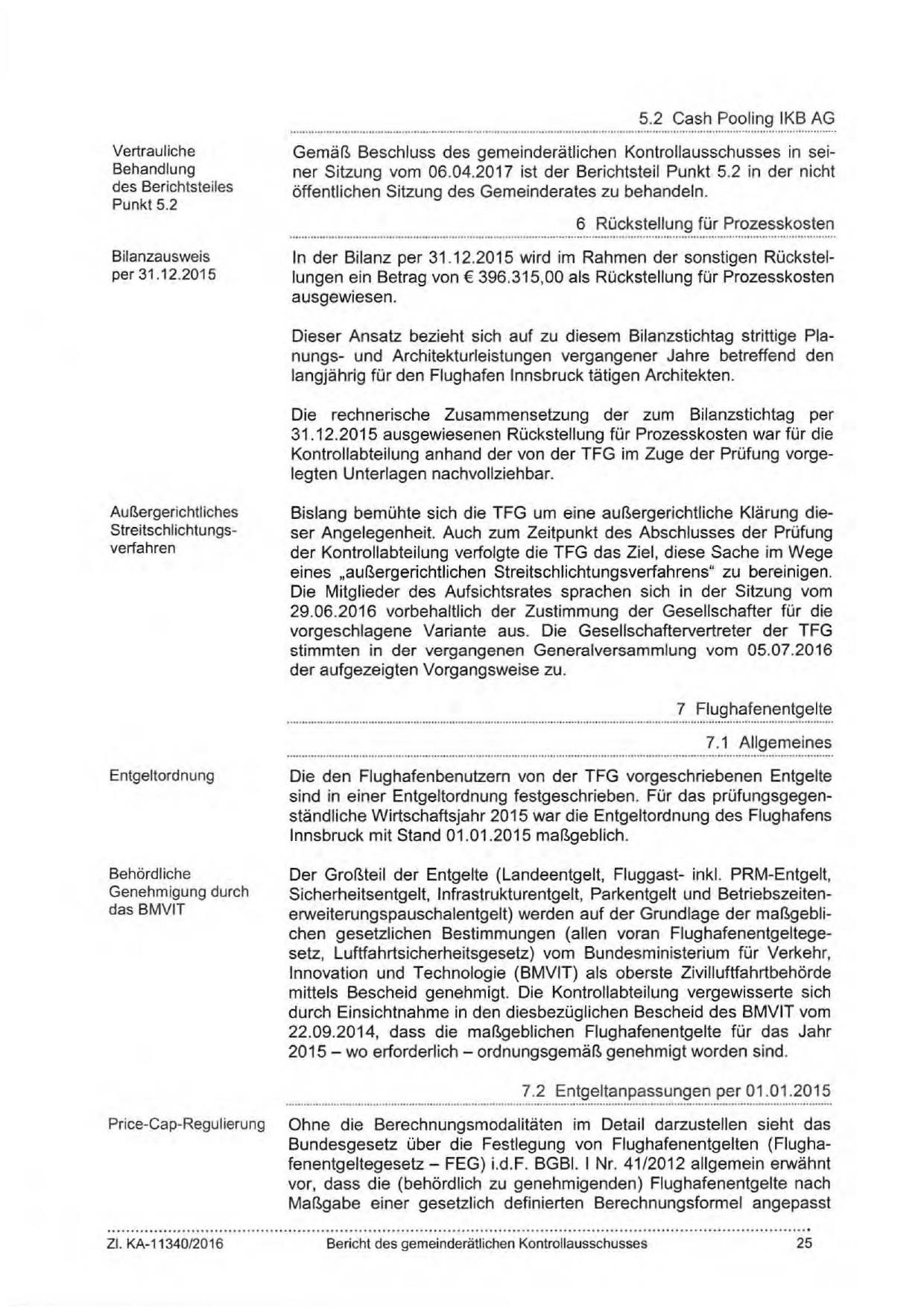 Gemäß Beschluss des gemeinderätlichen Kontrollausschusses in seiner Sitzung vom 06.04.2017 ist der Berichtsteil Punkt 5.2 in der nicht