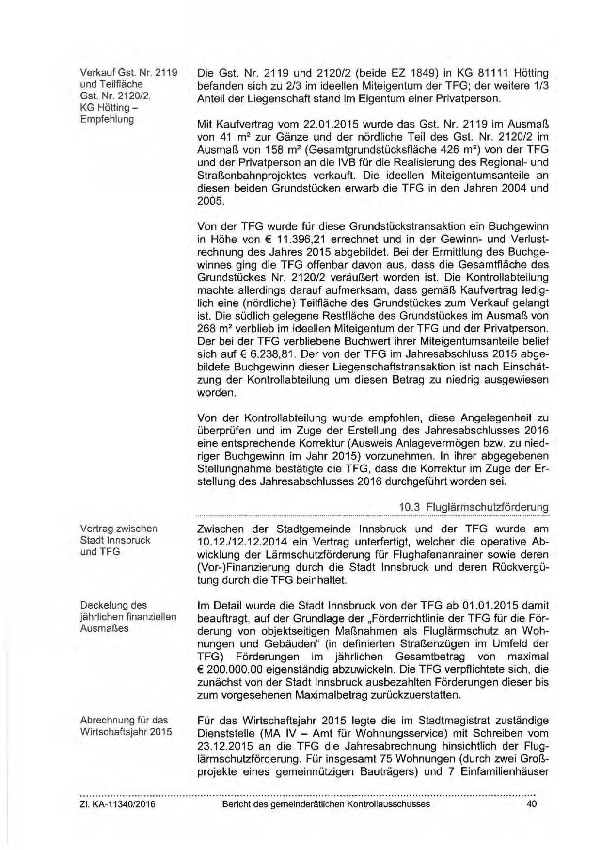 (Vor-)Finanzierung durch die Stadt Innsbruck und deren Rückvergütung durch die TFG beinhaltet.