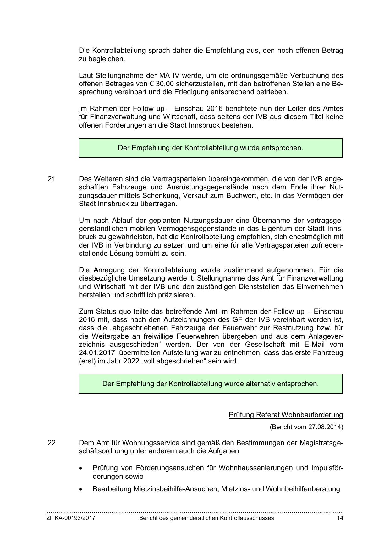 offenen Forderungen an die Stadt Innsbruck bestehen.