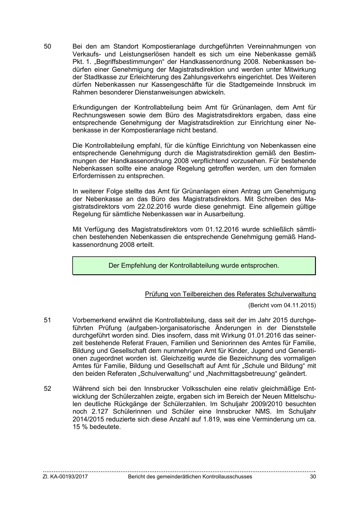 dürfen Nebenkassen nur Kassengeschäfte für die Stadtgemeinde Innsbruck im